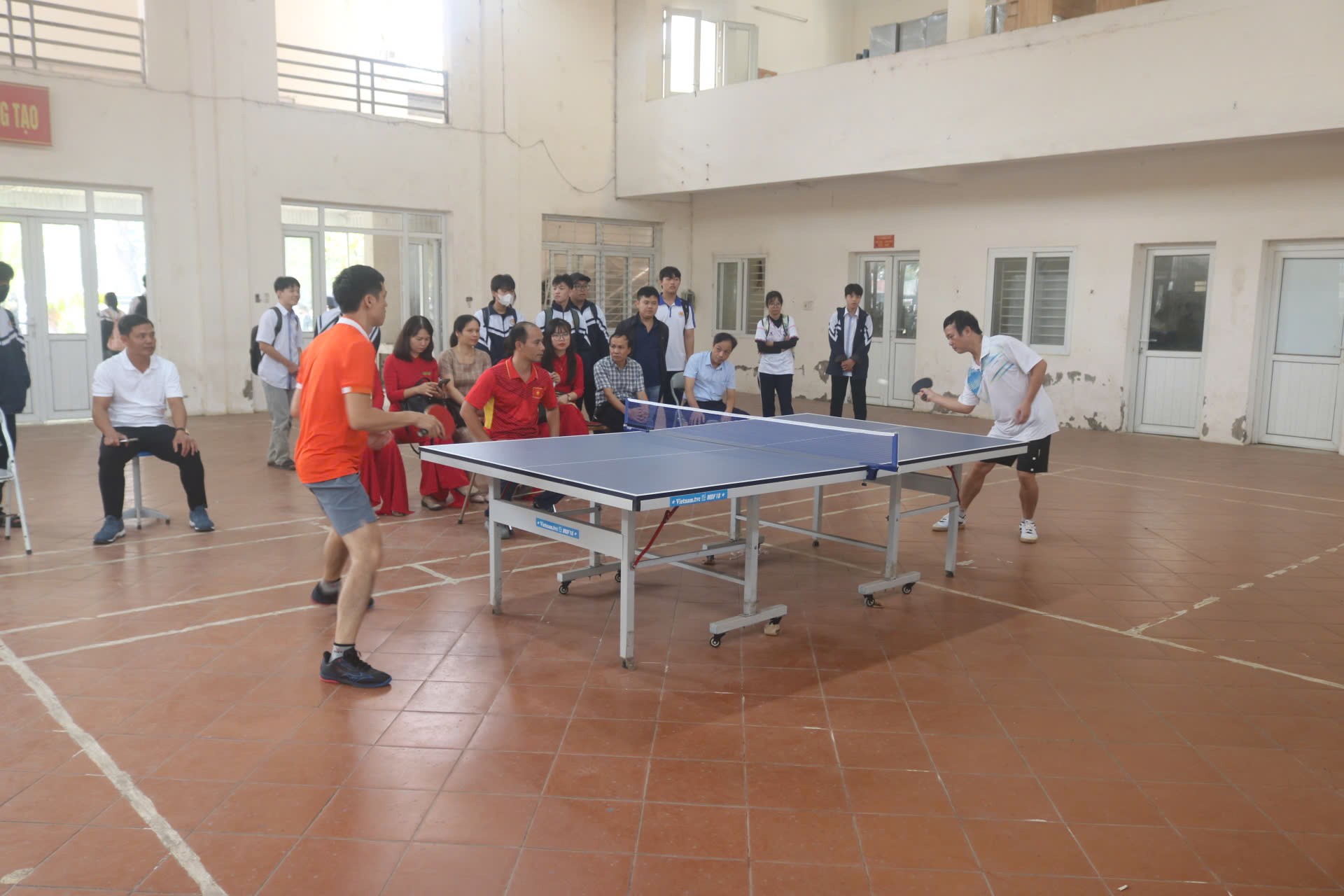 Trong khuôn khổ chương trình giao lưu, hoạt động thể thao với môn bóng bàn đã diễn ra đầy sôi nổi và hào hứng. Các trận thi đấu đôi nam và đơn nam quy tụ những vận động viên không chuyên từ ba nhà trường: THPT Trần Đăng Ninh, THPT Đoàn Kết - Hai Bà Trưng, và Trung tâm GDNN-GDTX Hai Bà Trưng. Từng đường bóng đầy kỹ thuật và những pha giao tranh kịch tính đã mang lại bầu không khí cuồng nhiệt, tạo nên những giây phút giải trí đầy thư giãn. Không chỉ là sân chơi thể thao, hoạt động còn là dịp để các thầy cô từ ba đơn vị giao lưu, tăng cường tình đoàn kết và gắn bó. Hoạt động bóng bàn là một minh chứng cho sự cân bằng giữa giao lưu học thuật và xây dựng tinh thần đồng đội, góp phần tạo nên thành công trọn vẹn cho chương trình.