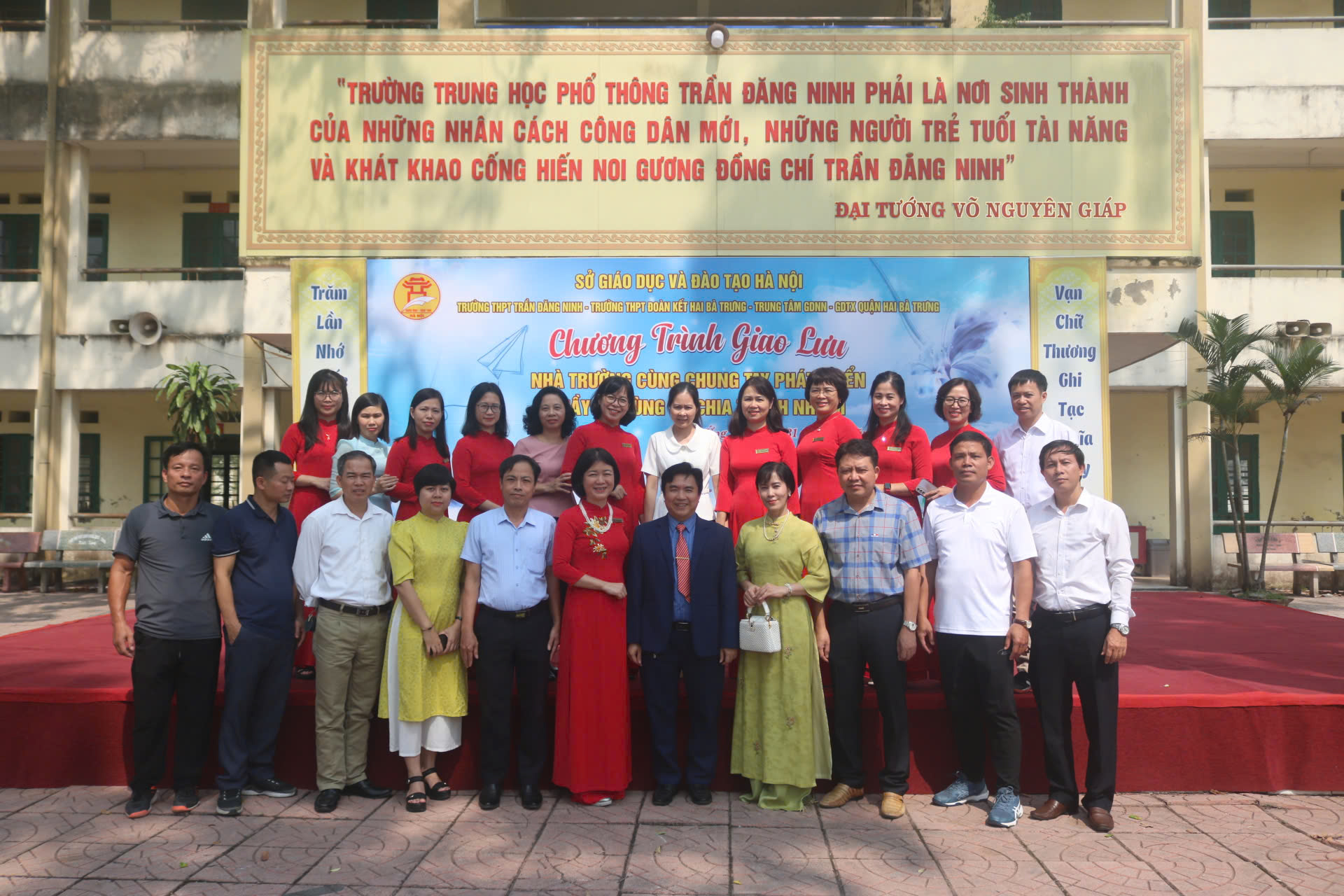 Sáng ngày 31/10/2024, tại trường THPT Trần Đăng Ninh (xã Hoa Sơn, huyện Ứng Hòa, TP Hà Nội), đã diễn ra chương trình giao lưu và trao đổi kinh nghiệm với chủ đề “Đổi mới sáng tạo, nâng cao chất lượng vì học sinh”. Đây là hoạt động ý nghĩa với sự tham gia của ba đơn vị giáo dục: trường THPT Trần Đăng Ninh, THPT Đoàn Kết - Hai Bà Trưng, và Trung tâm GDNN-GDTX Hai Bà Trưng.