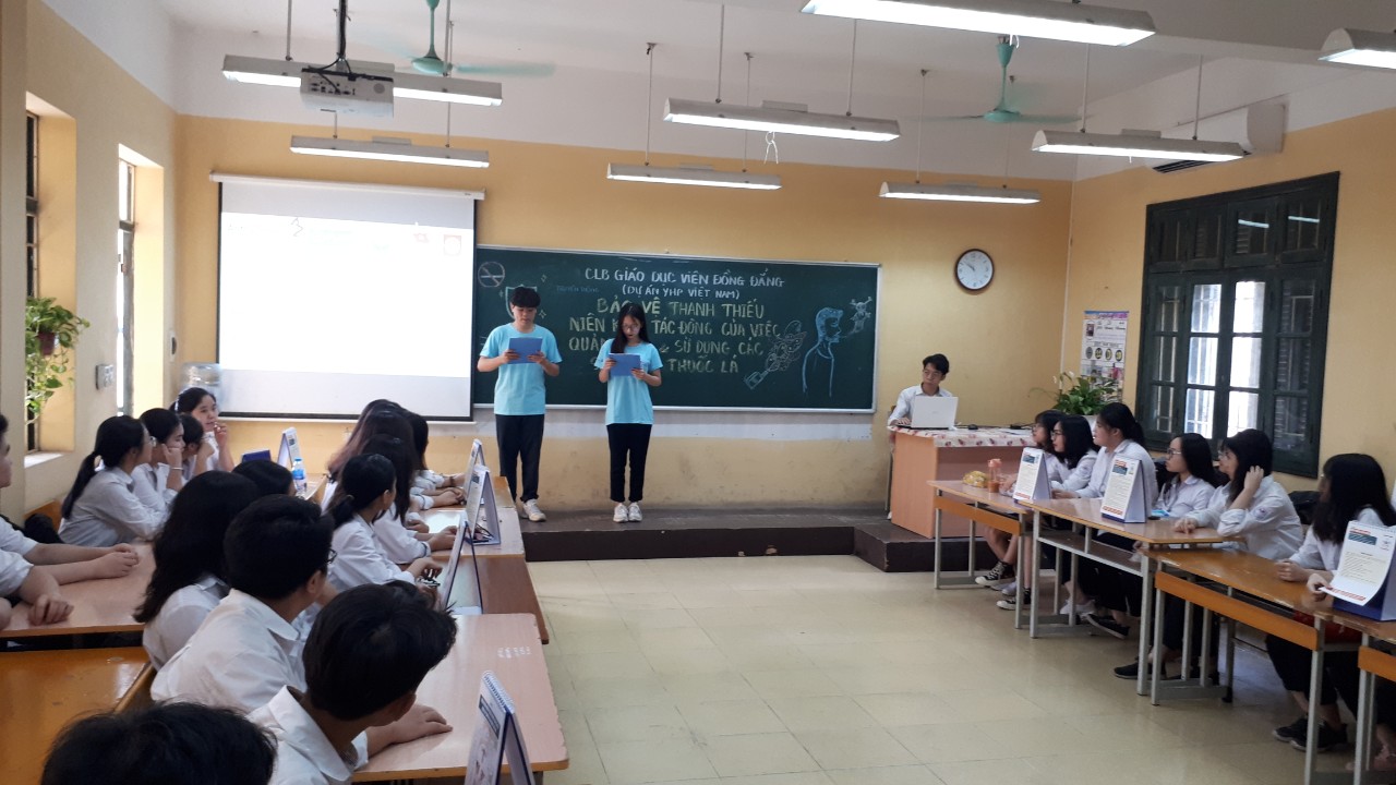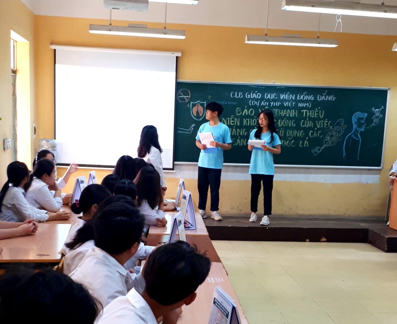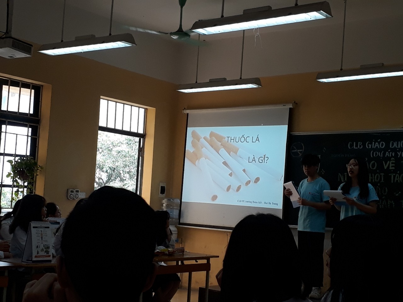 Vì vậy, nhằm nâng cao nhận thức của các bạn học sinh về những tác hại của thuốc lá đối với sức khỏe, để không hút và giúp người thân của bạn từ bỏ thuốc lá. Và đặc biệt là Hưởng ứng ngày thế giới phòng chống thuốc lá 31/5/2020, CLB Giáo dục viên đồng đẳng của trường đã tiến hành buổi truyền thông “Bảo vệ thanh thiếu niên khỏi tác động của việc quảng cáo và sử dụng các sản phẩm thuốc lá” đối với các học sinh lớp 11D3