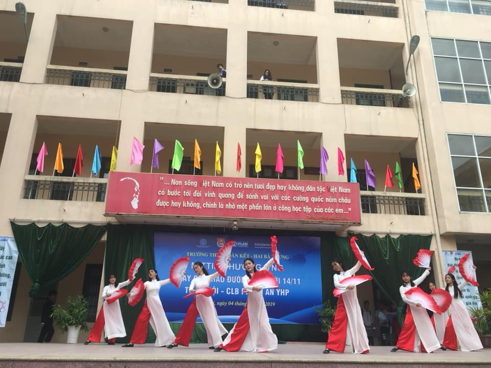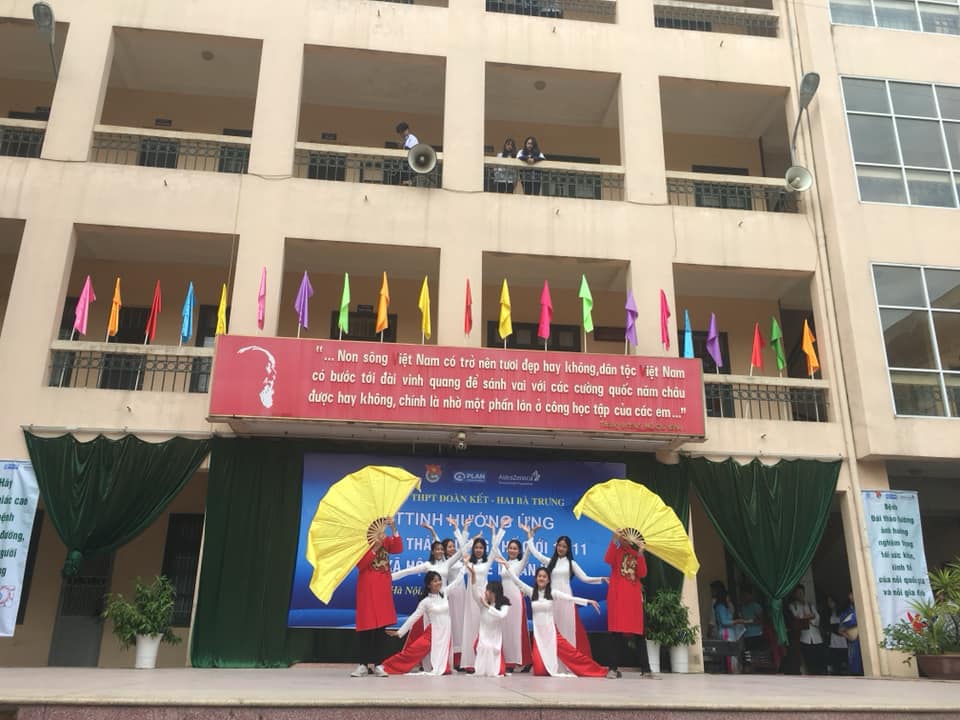 Tiếp theo chương trình là phần văn nghệ chào mừng lễ mít tinh của các học sinh trường THPT Đoàn Kết-Hai Bà Trưng biểu diễn.
