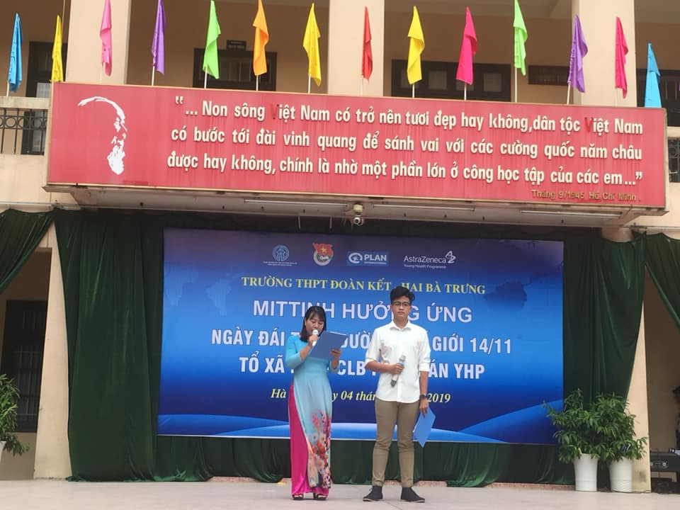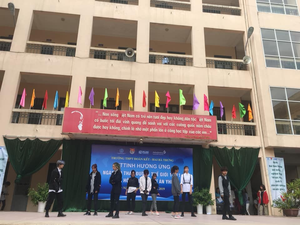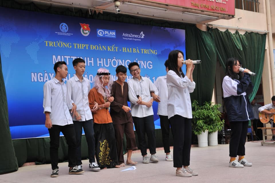 Tham gia buổi mít tinh hôm nay có đại diện tổ chức Plan International, trung ương Đoàn TNCS HỒ Chí Minh có, Ban giám hiệu, các thầy cô giáo và các em học sinh trường THPT Đoàn Kết-Hai Bà Trưng