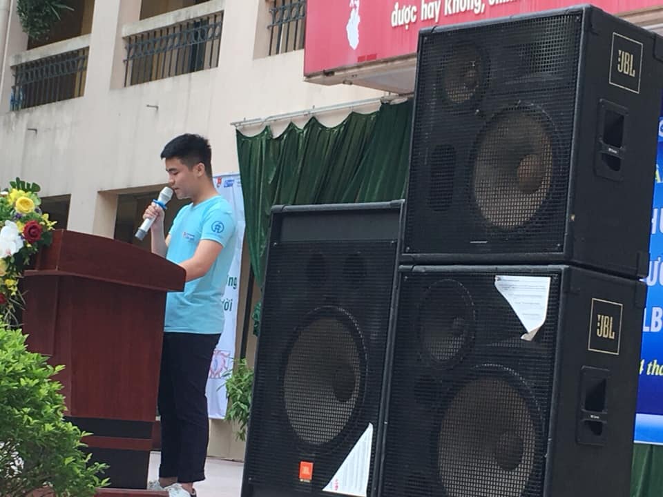 Mở đầu chương trình mít tinh hưởng ứng ngày đái tháo đường thế giới 14/11, em Phí Mạnh Quý, học sinh lớp 10A1, thành viên CLB giáo dục viên đồng đẳng dự án YHP lên phát biểu hưởng ứng.