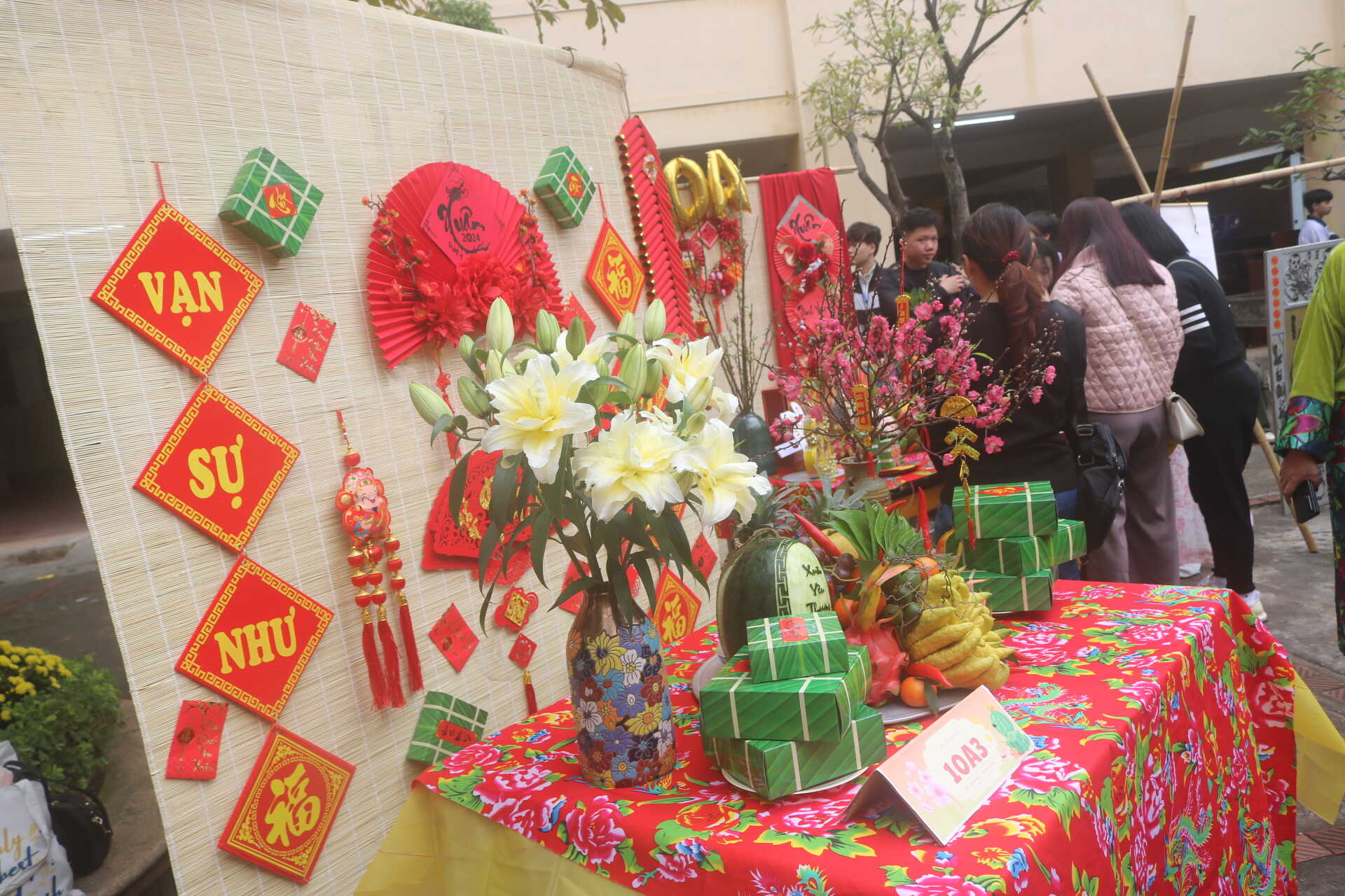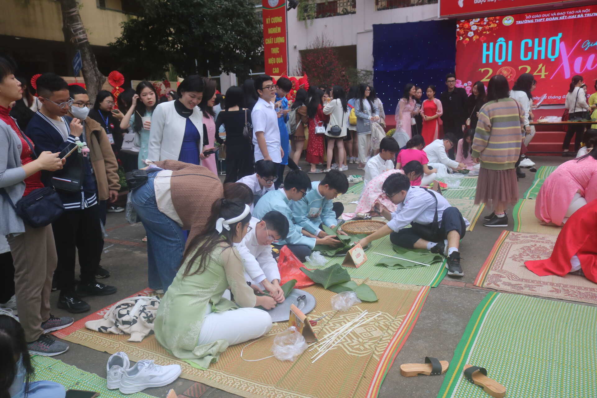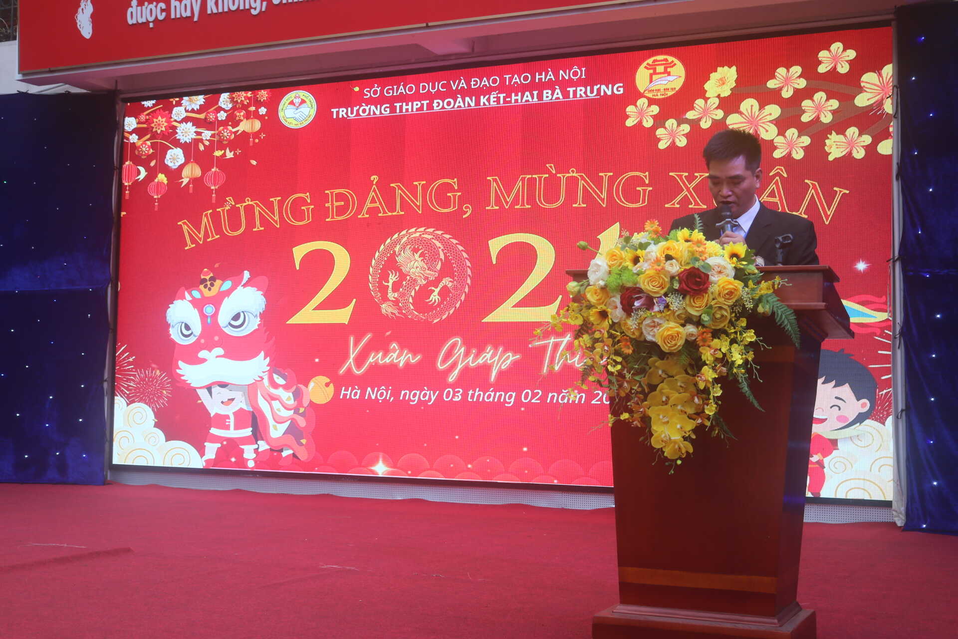 Trong không khí tràn ngập niềm vui đón tết cổ truyền của dân tộc, mừng Đảng, mừng Xuân, mừng những thành tựu năm 2023 của đất nước, toàn dân, toàn quân hướng tới kỷ niệm 95 năm ngày thành lập đảng cộng sản việt nam (03/02/1930 – 03/02/2024). Nhằm giúp học sinh trong trường hướng về cuội nguồn và tìm hiểu thêm về tết cổ truyền dân tộc, truyền thống lịch sử, văn hoá địa phương, từ đó nâng cao ý thức giữ gìn và phát huy bản sắc văn hoá dân tộc trong quá trình hội nhập quốc tế, tạo sân chơi mang đậm sắc xuân lành mạnh, bổ ích để học sinh thể hiện tài năng, trí tuệ, sự sáng tạo. Được sự nhất trí của Chi bộ và Ban Giám hiệu nhà trường, sáng 03/02/2024, trường THPT Đoàn Kết-Hai Bà Trưng long trọng tổ chức chương trình Mừng Đảng mừng Xuân - Hội chợ Xuân Giáp Thìn 2024.