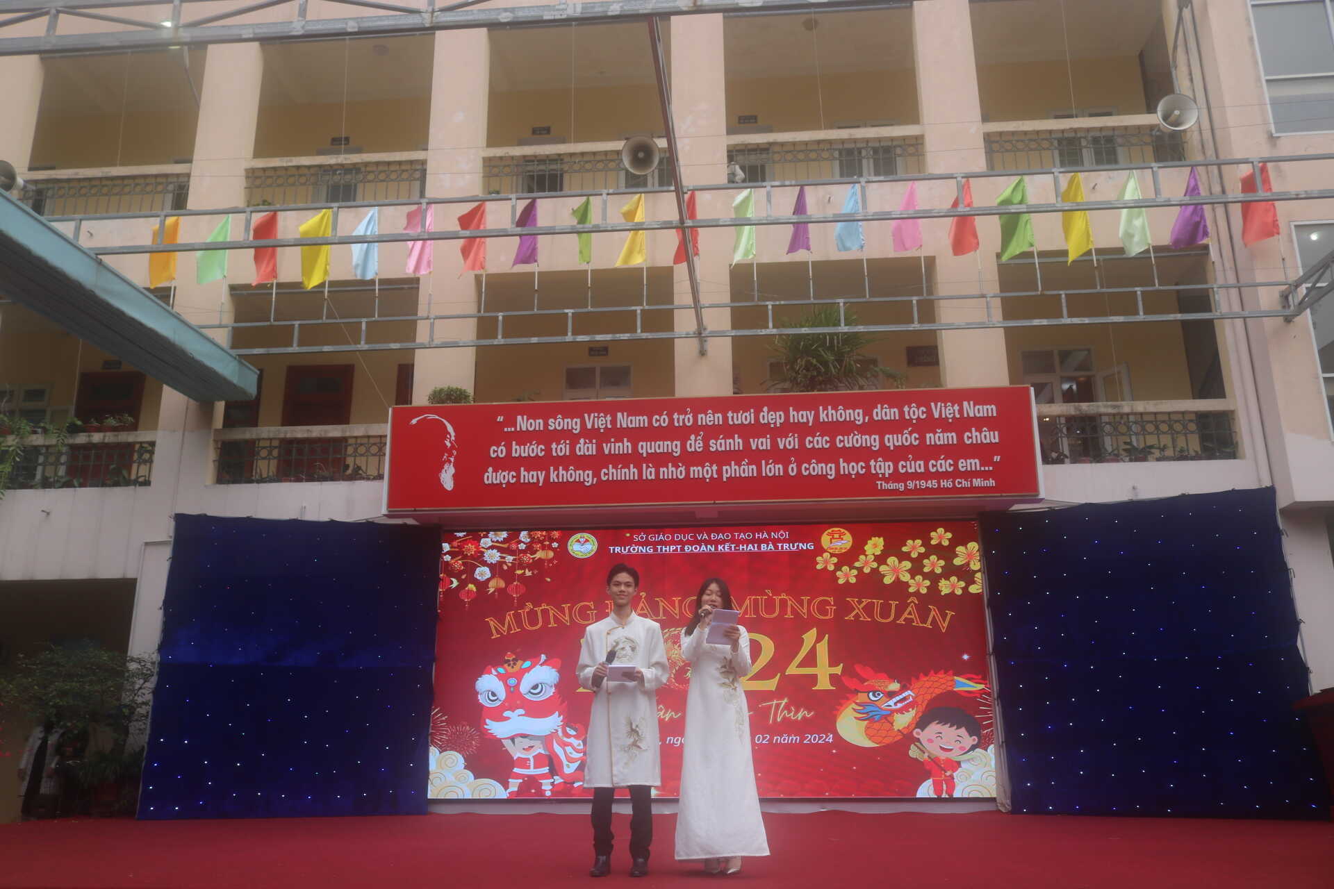 Ban giám hiệu hi vọng rằng chương trình Mừng đảng mừng Xuân - Hội chợ xuân Giáp Thìn trường THPT Đoàn Kết-Hai Bà Trưng 2024 sẽ tạo sân chơi mang đậm sắc xuân lành mạnh, giúp học sinh trong trường hướng về cuội nguồn và có thêm những hiểu biết về tết cổ truyền dân tộc, về truyền thống lịch sử, văn hoá địa phương, từ đó nâng cao ý thức giữ gìn và phát huy bản sắc văn hoá dân tộc, đồng thời tạo điều kiện để các em được giao lưu, học hỏi và chia sẻ những kinh nghiệm trong cuộc sống, củng cố và hiểu biết thêm một số kiến thức, kỹ năng. Thúc đẩy phong trào thi đua học tốt, phát huy năng lực sáng tạo.