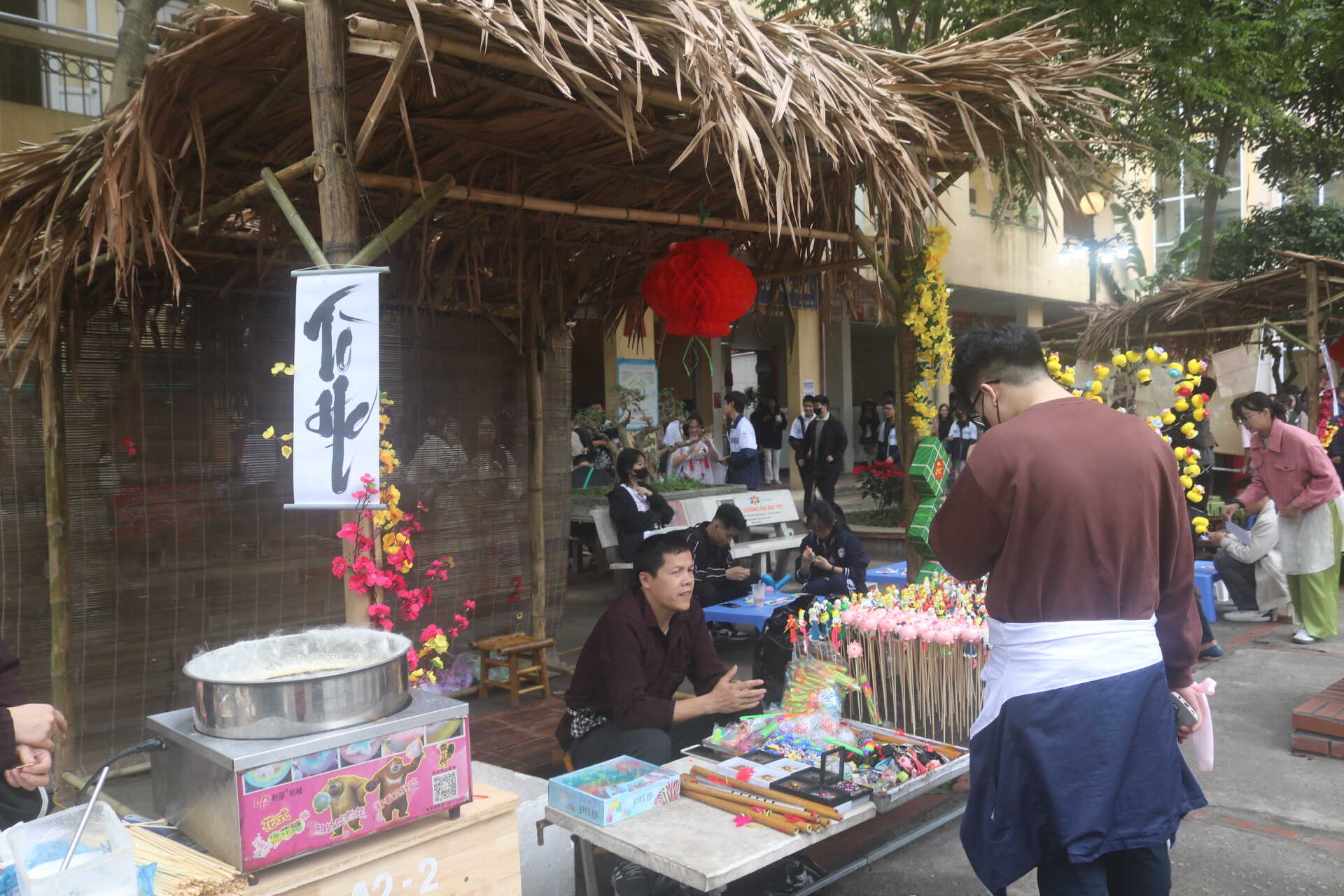 Các em còn được tham quan các gian hàng cổ truyền như Ông đồ, tò he, tranh Đông Hồ, được tham gia các trò chơi dân gian như nhảy dây, nhảy sạp, chơi ô ăn quan, chơi chuyền, ném còn, bịt mắt đập chiêng…các em còn dự thi gói bánh chưng, bày mâm ngũ quả, cờ vua, cầu lông, bóng bàn. Các em còn trang trí, trưng bày, trao đổi, mua bán các sản phẩm đặc sắc ở địa phương.