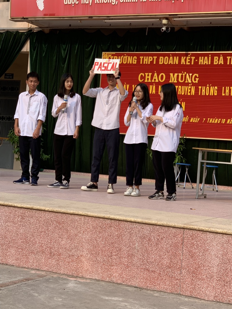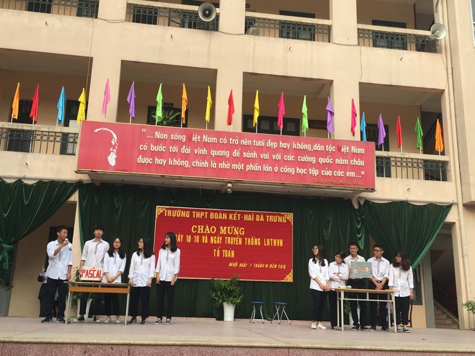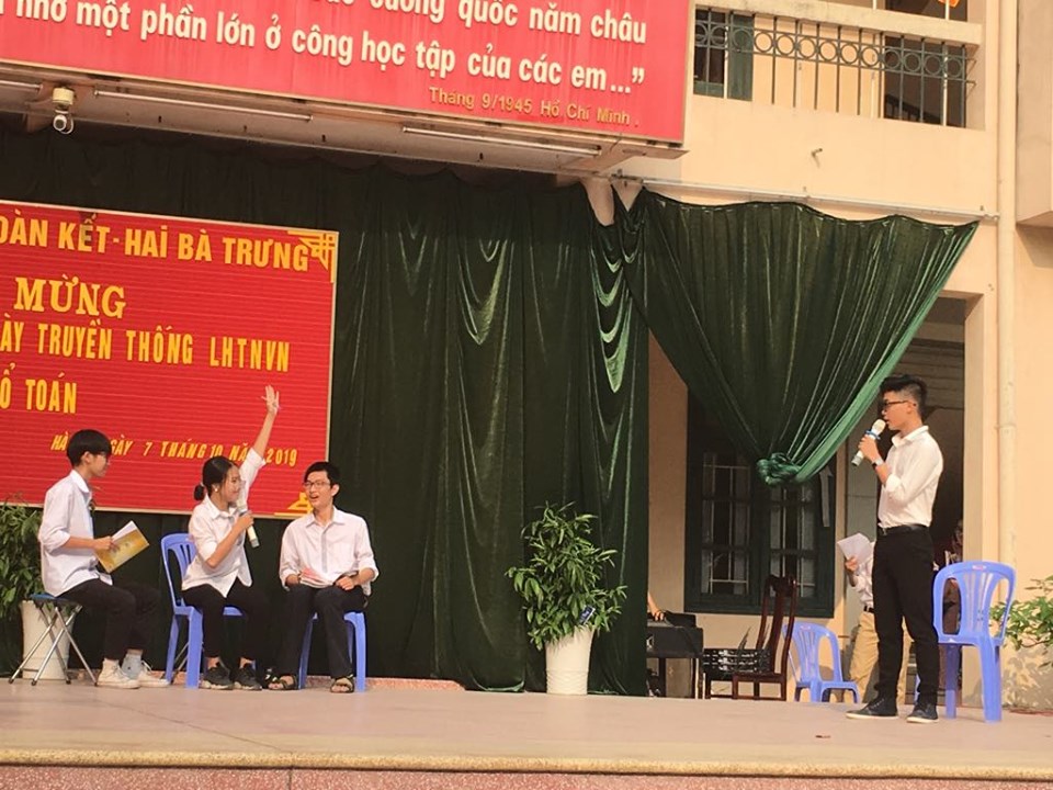 Thứ 2 ngày 07/10/2019, trên sân trường đã diễn ra chương trình ngoại khóa do tổ Toán thực hiện. Chương trình được thực hiện đúng dịp chào mừng kỷ niệm 65 năm Ngày Giải phòng Thủ đô (10/10/1954 - 10/10/2019) và 63 năm ngày truyền thống Hội LHTN Việt Nam (15/10/1956 -15/10/2019). Với sự chuẩn bị công phu của các thầy cô giáo tổ Toán và các em học sinh, chương trình đã đem đến cho các em học sinh những kiến thức bổ ích và lý thú không chỉ trong Toán học mà còn trong các lĩnh vực khác.