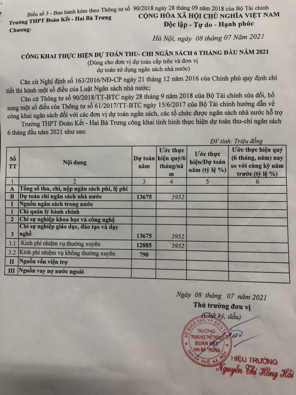 Công khai thực hiện dự toán thu chi ngân sách 6 tháng đầu năm 2021