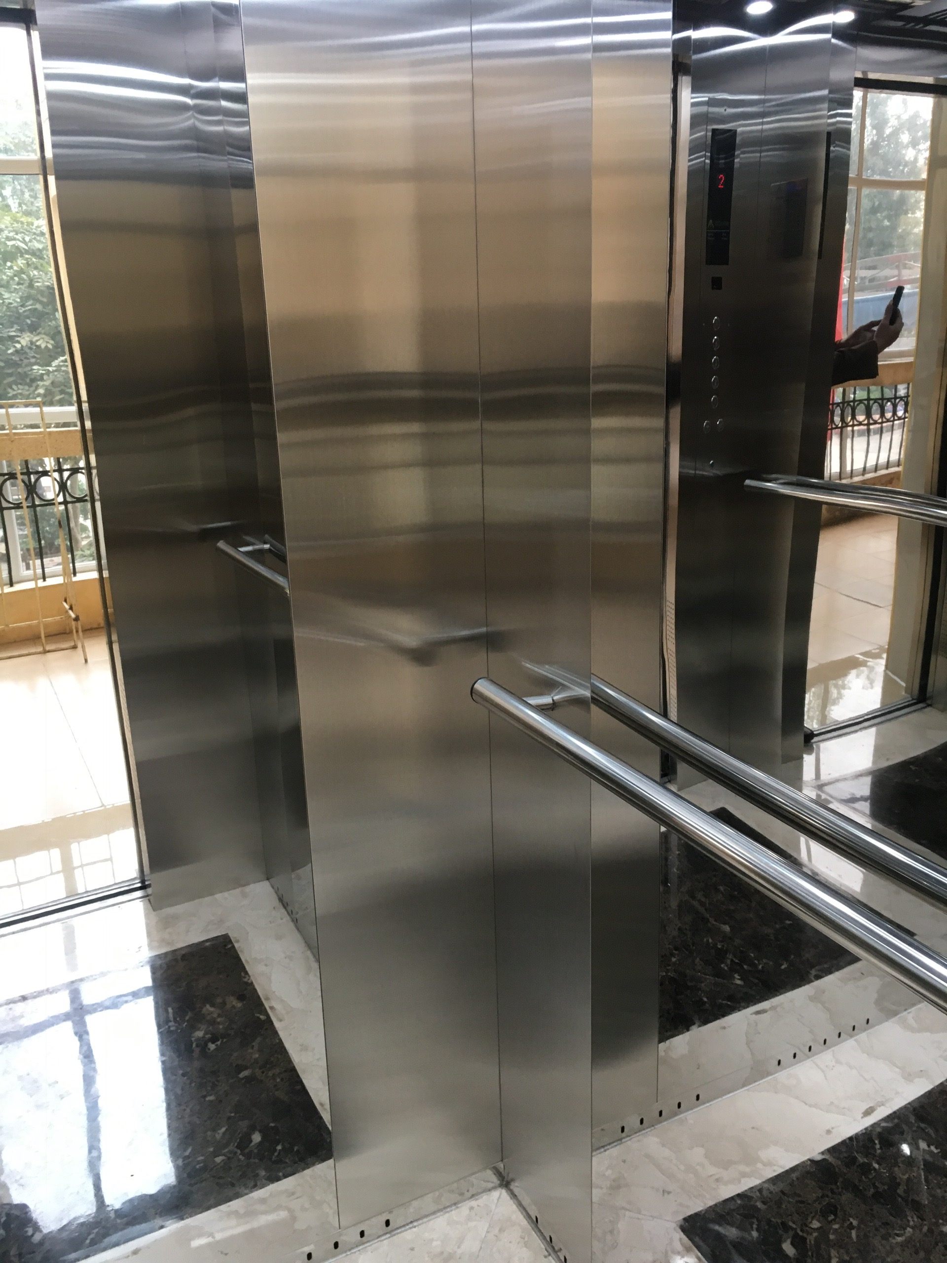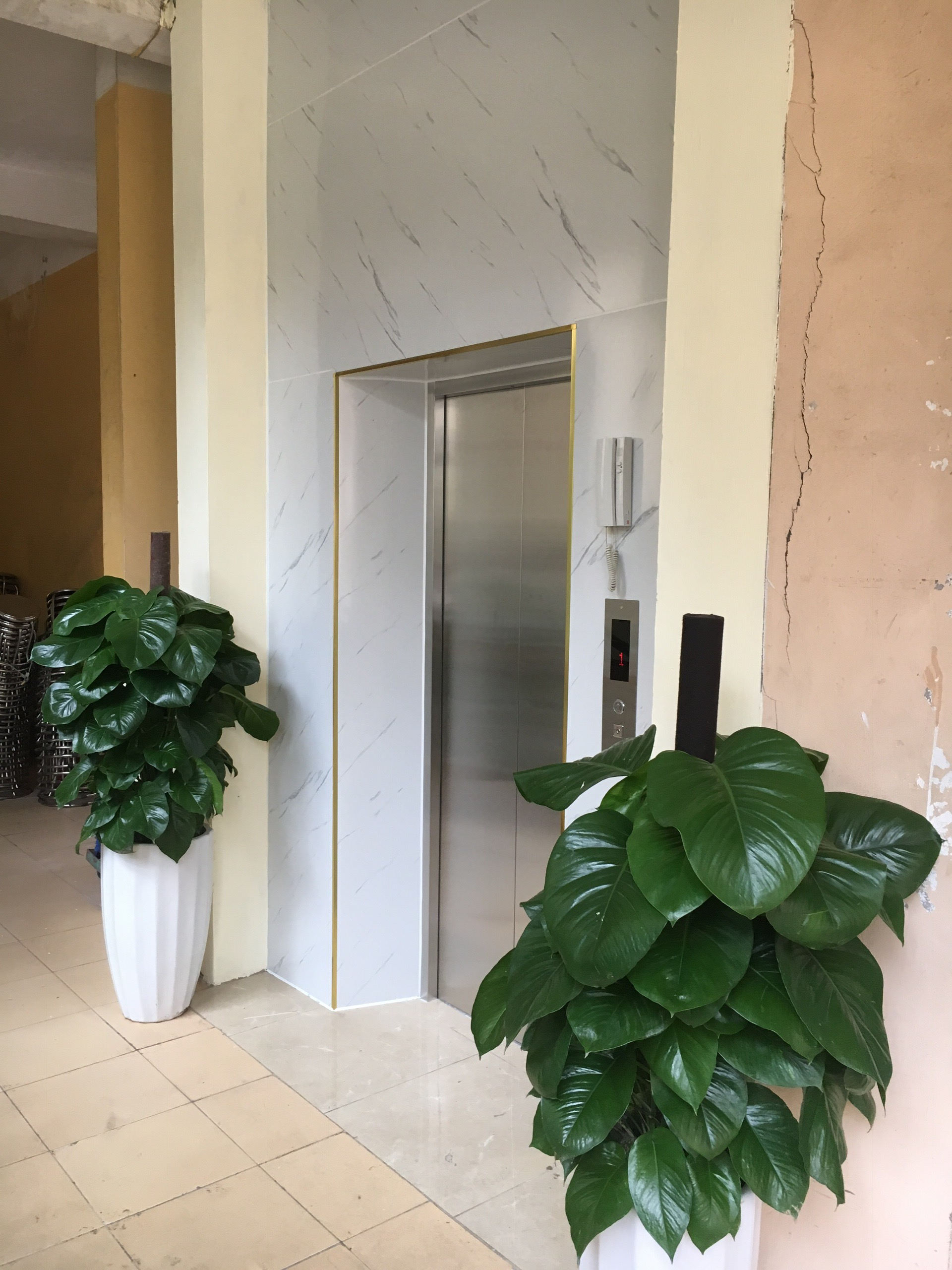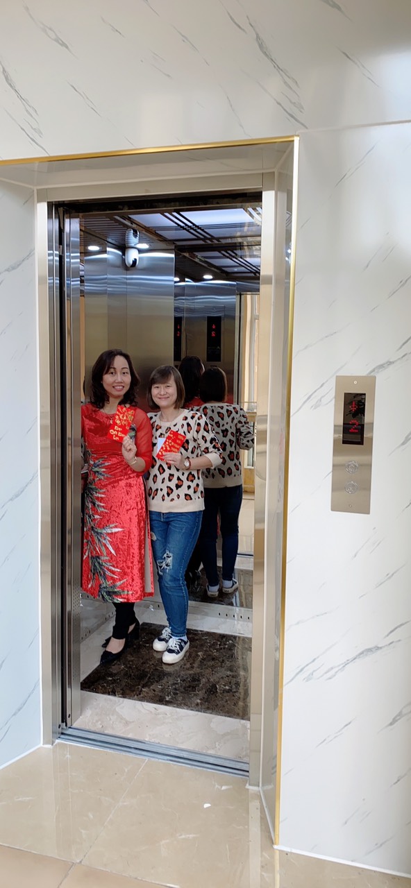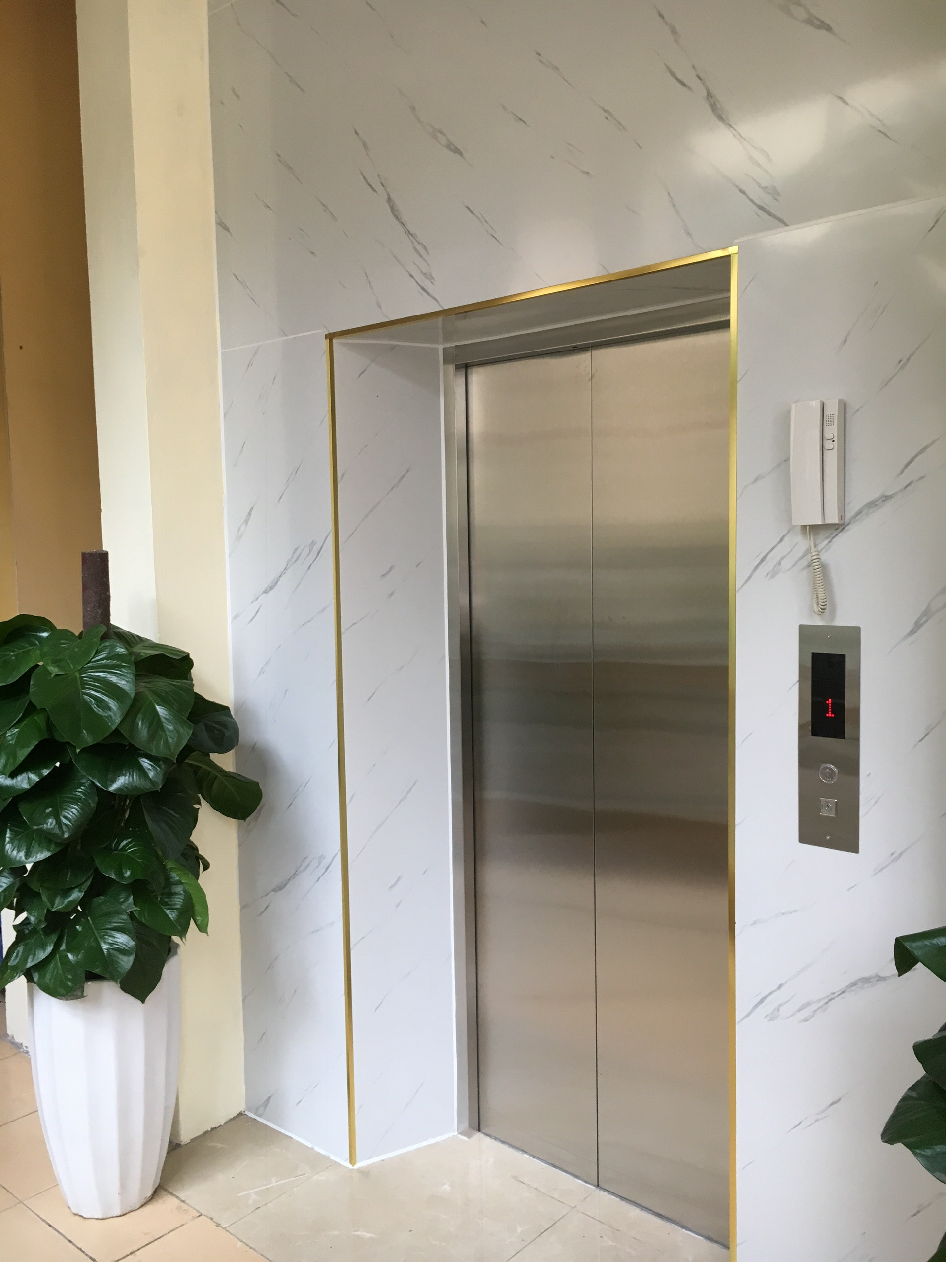 - Phòng thang : Sàn đá trang nhã, trần trong suốt được trang trang trí bắt mắt, có đèn chiếu sáng và thông gió, bao quanh phòng thang là gương Inox, để sử dụng thang máy người dùng quét thẻ từ thông minh trước khi bấm nút điều khiển số tầng.
