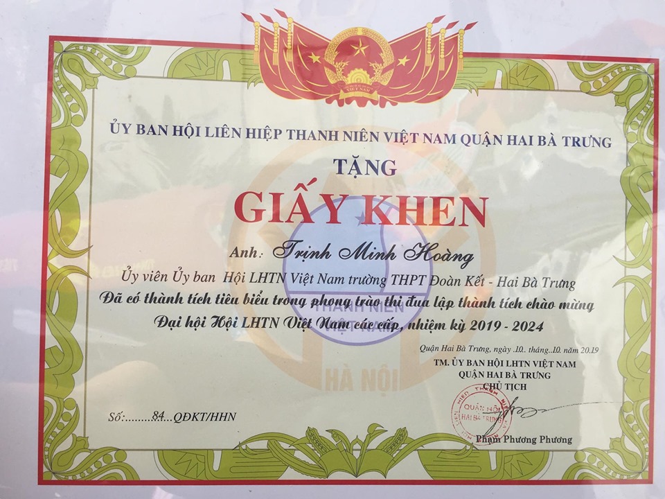 Sáng 13/10, đại diện các bạn đoàn viên thanh niên trường THPT Đoàn Kết-Hai Bà Trưng đã tham gia chương trình “ Điểm Hẹn Thanh Niên 2019 “ kỷ niệm 63 năm ngày truyền thống Hội LHTN Việt Nam ( 15/10/1956 - 15/10/2019) với các nội dung: