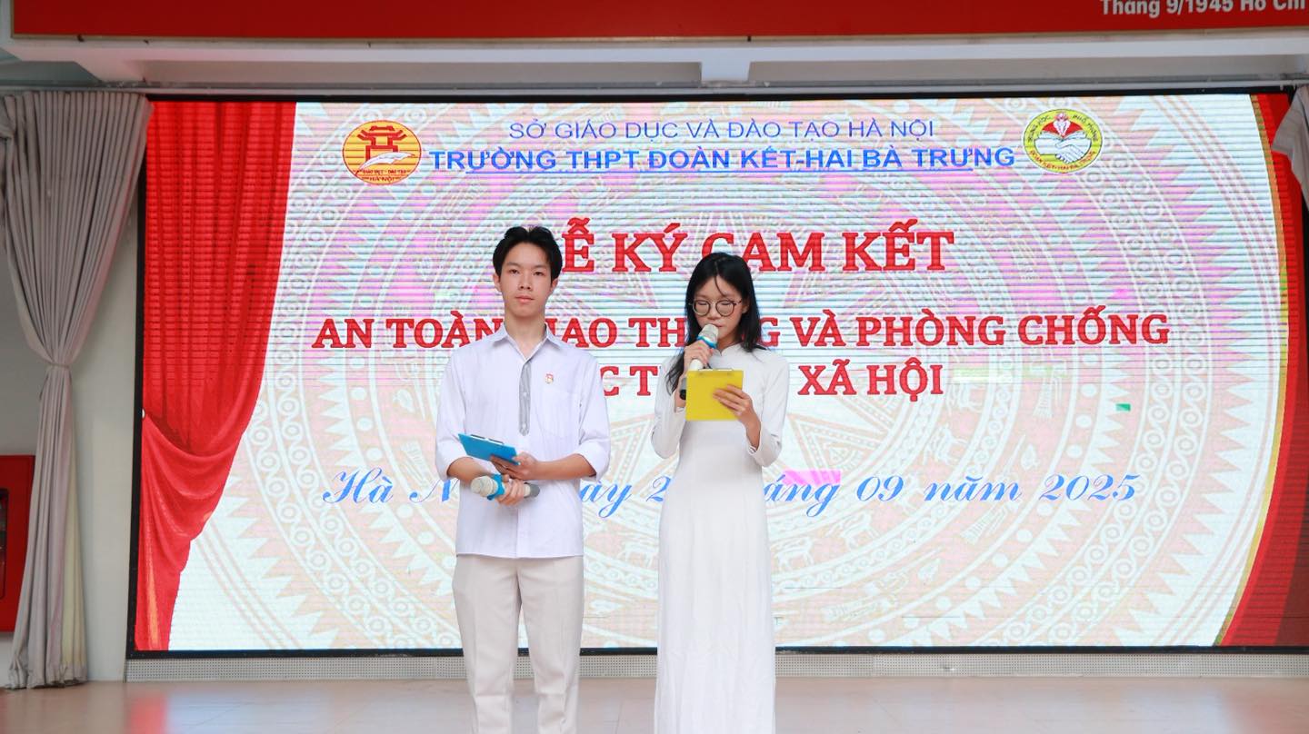Ngày 22/9/2025, Trường THPT Đoàn Kết – Hai Bà Trưng tổ chức buổi sinh hoạt dưới cờ ở cả hai ca sáng và chiều với nhiều hoạt động phong phú, lan tỏa thông điệp về văn hóa giao thông và phòng chống tệ nạn xã hội.
