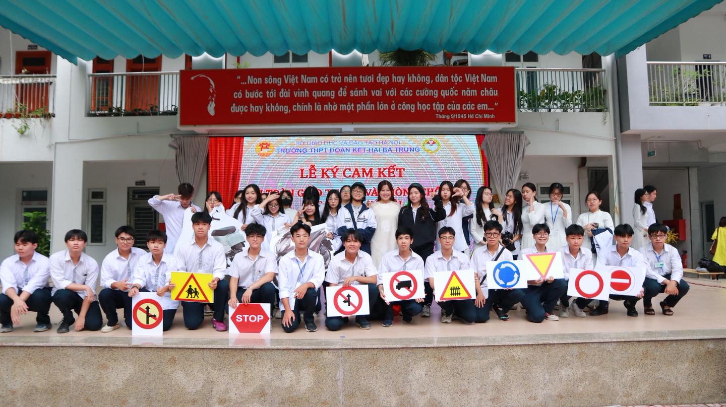 Điểm nhấn của chương trình là lễ ký kết “Bản cam kết bảo vệ an toàn giao thông”, có sự chứng kiến của đại diện Công an phường, Ban Giám hiệu, cha mẹ học sinh và toàn thể học sinh nhà trường. Nghi thức khẳng định quyết tâm xây dựng môi trường học đường an toàn, văn minh, đồng thời nhắc nhở mỗi học sinh ý thức hơn trong việc chấp hành luật giao thông.