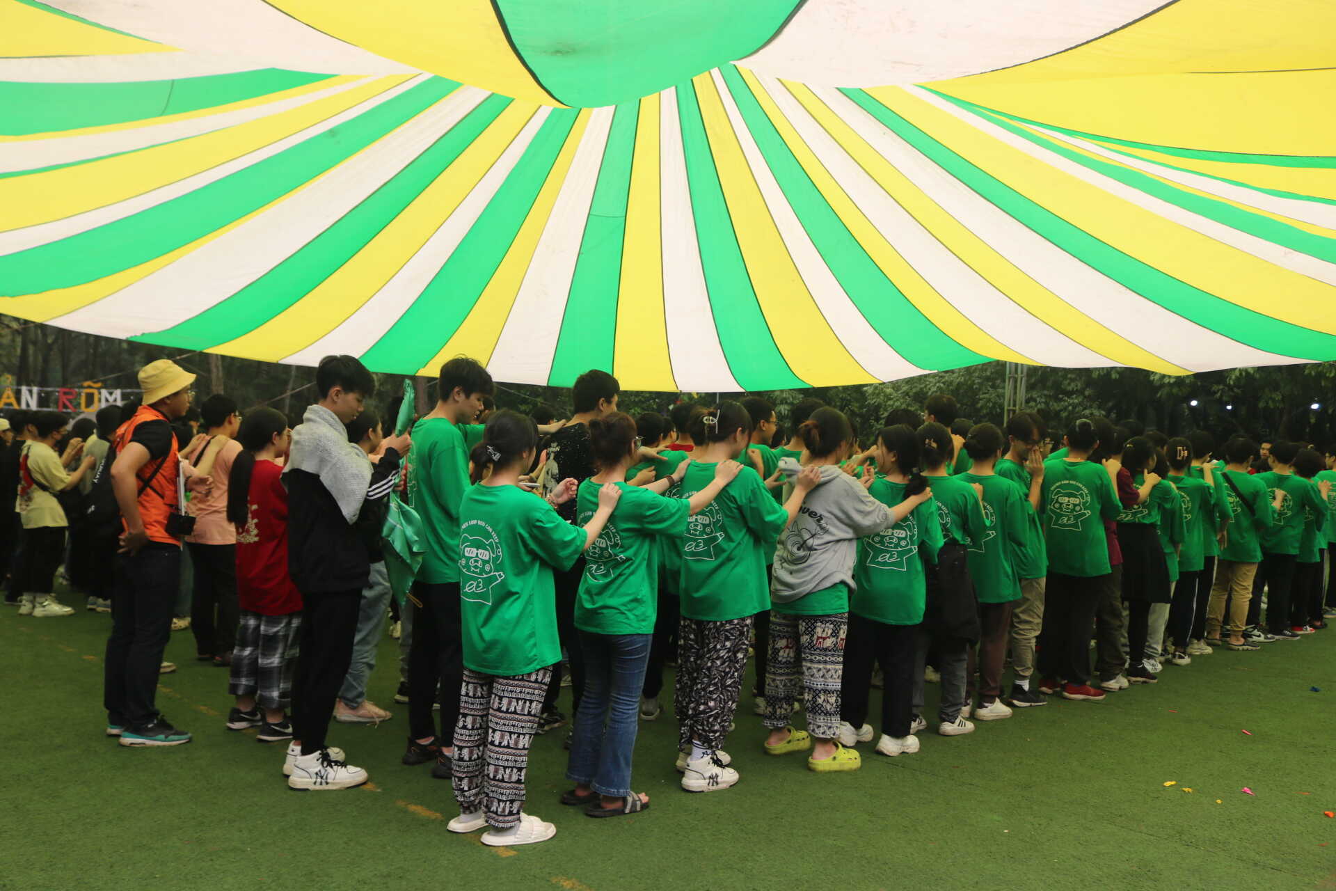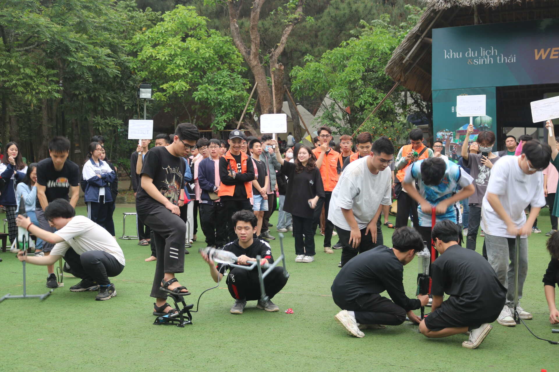 Hoạt động Team Building bao gồm: khởi động, về đích với các phần thi: gậy phao hơi khổng lồ, nổ bóng, bánh xe thần tốc.