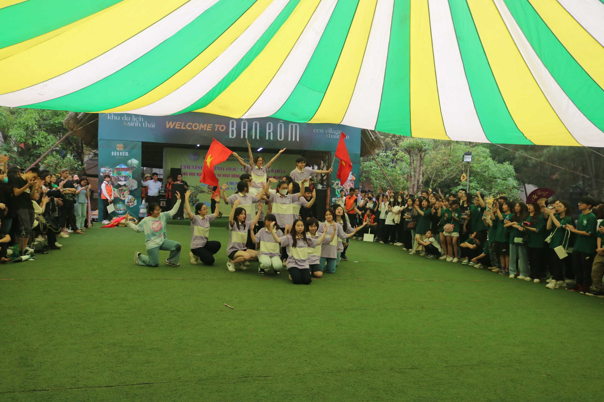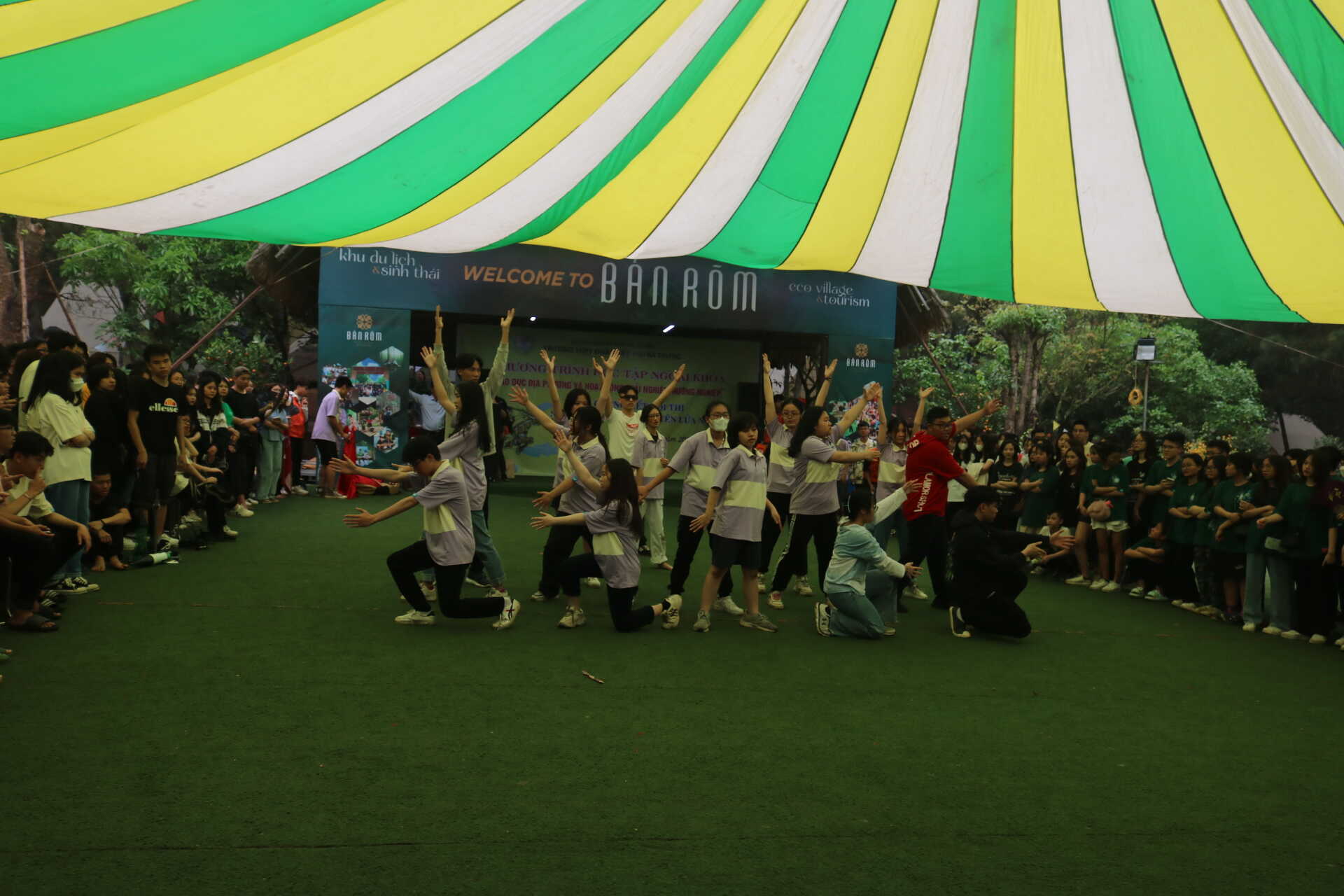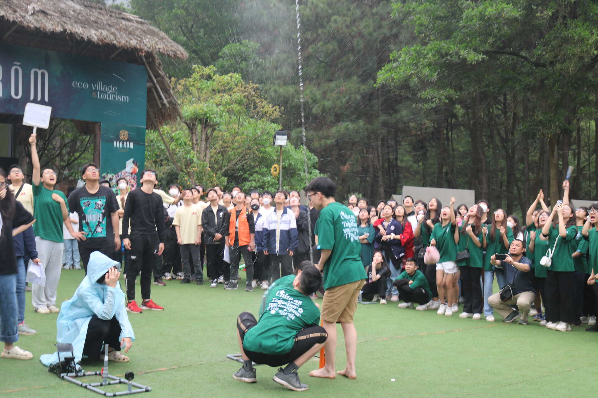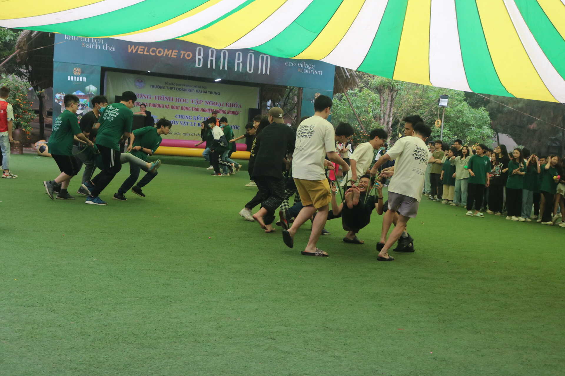 Kết thúc thăm quan khu di tích Đền Sóc các em học sinh di chuyển sang khu du lịch Bản Rõm. Tại đây, học sinh sẽ tham gia 02 hoạt động chủ đạo đó là: Trải nghiệm sinh tồn và TeamBuilding. Khi tham gia hoạt động “Trải nghiệm sinh tồn”, học sinh sẽ phải vượt qua thử thách tại các trạm trải nghiệm: