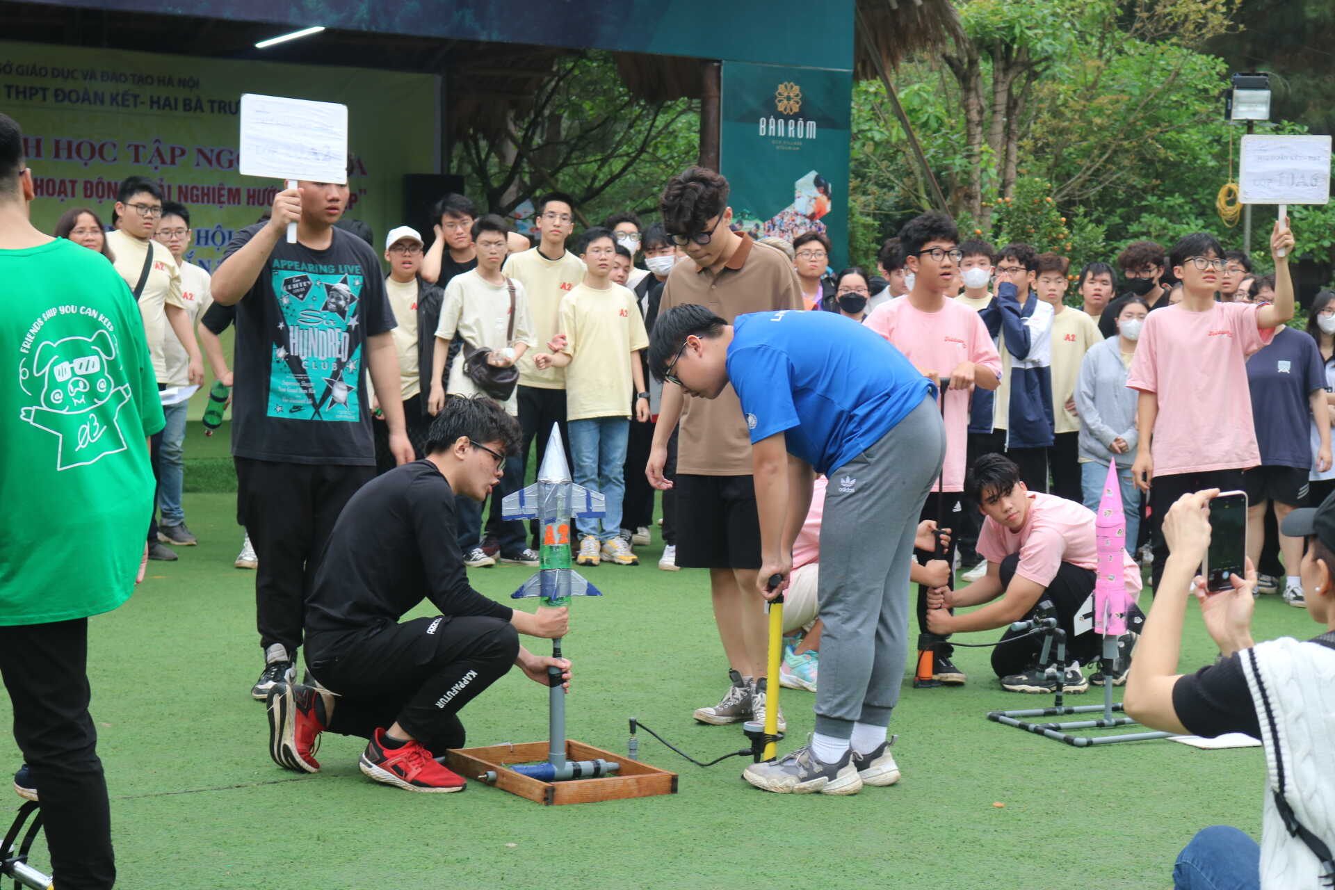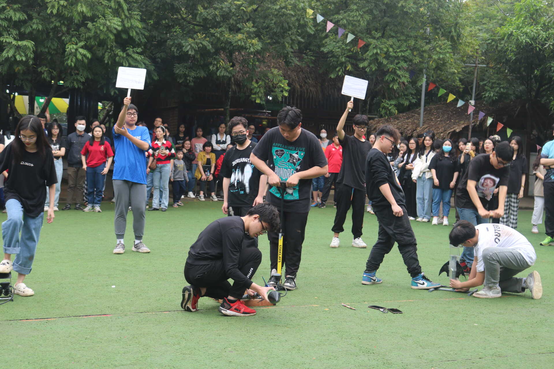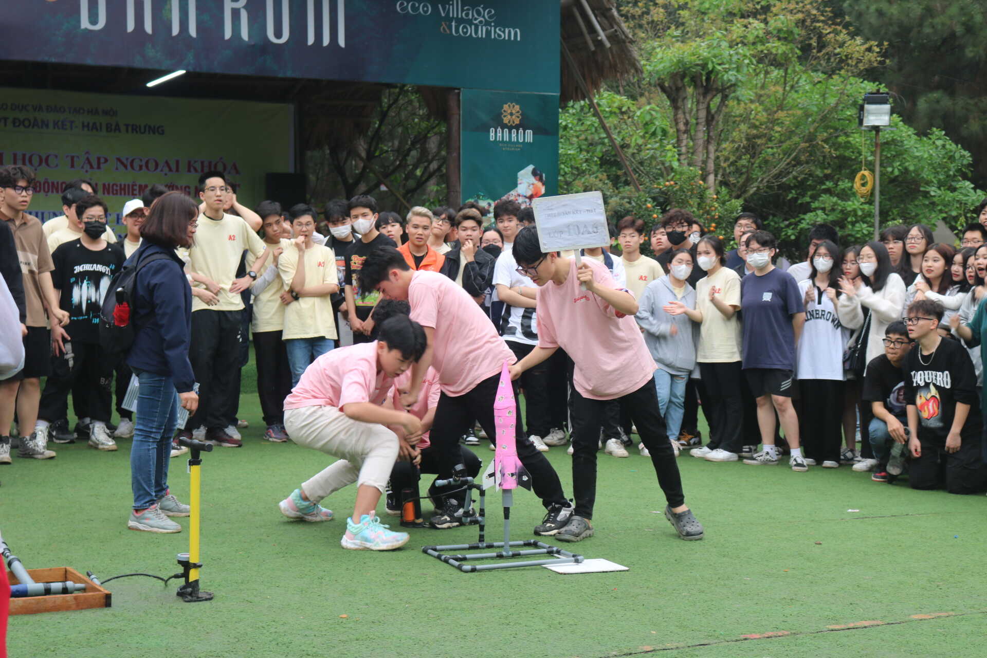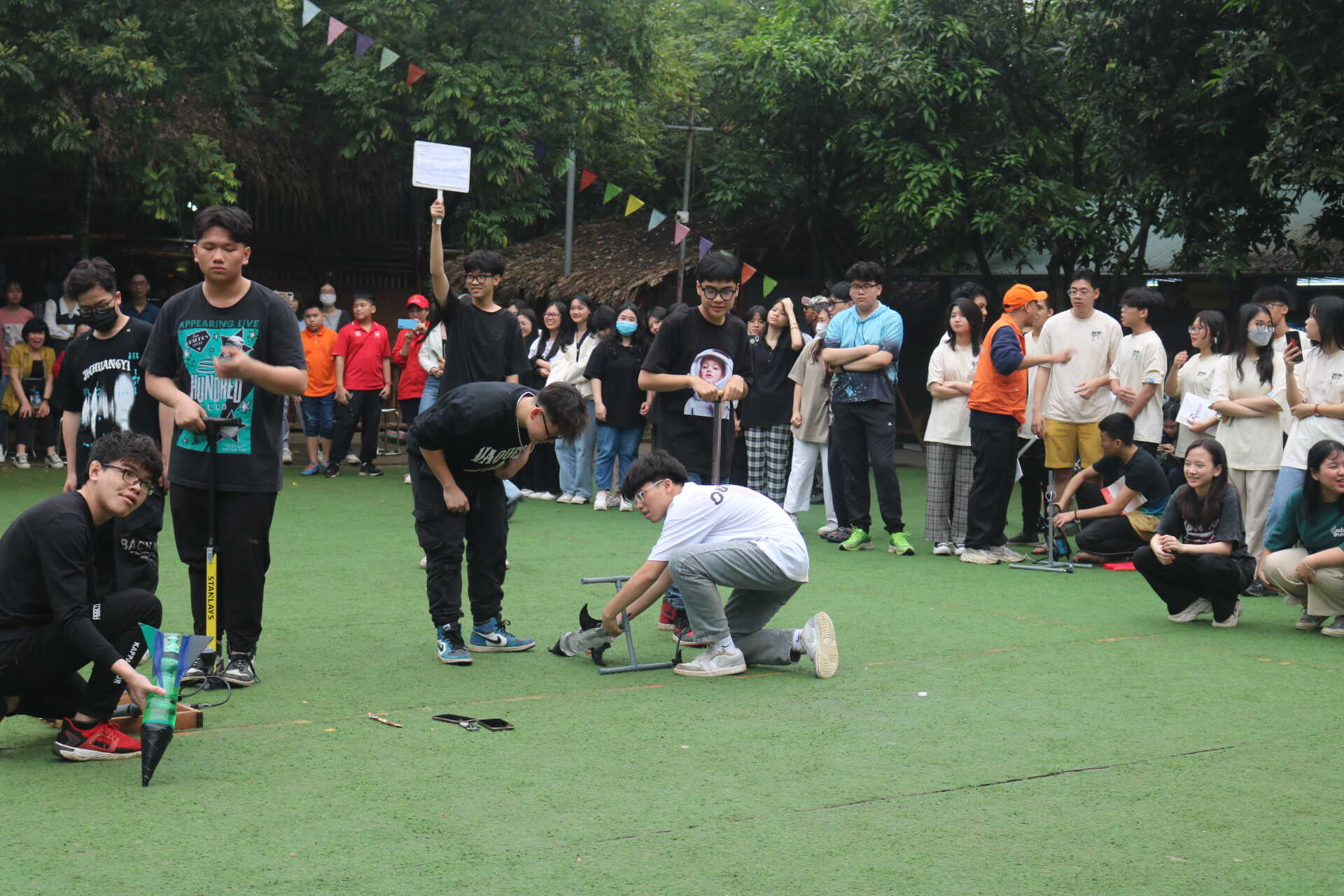 Và đặc biệt, các học sinh khối 10 đã có một trải nghiệm thú vị vừa học vừa chơi khi tham gia vòng chung kết “Hội thi Stem môn Vật lý: Bắn tên lửa nước”. Các lớp tham dự bắn tên lửa nước tại Bản Rõm gồm: 10A1, 10A2, 10A3, 10A4, 10A5, 10A6, 10D2, 10D4, 10D6, 10QT.
