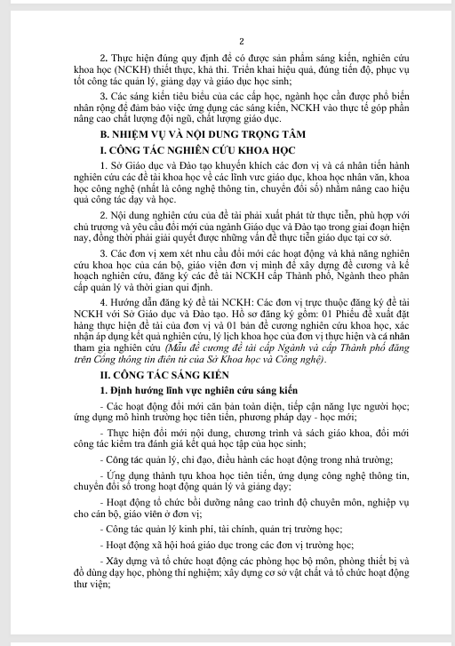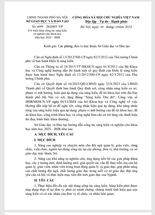 Hướng dẫn số 4099/SGDĐT-VP về việc triển khai công tác sáng kiến và nghiên cứu khoa học năm học 2025-2026