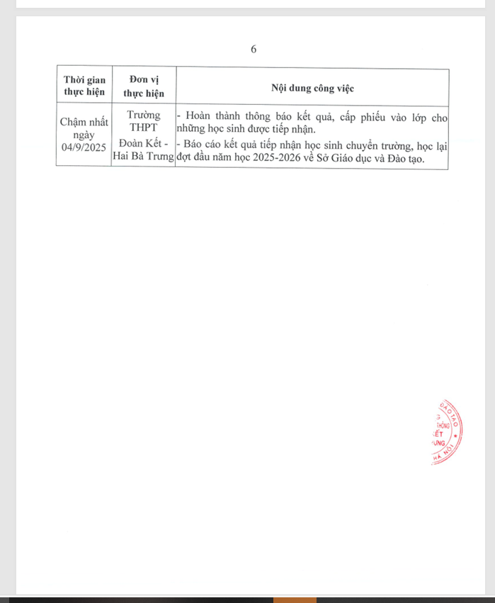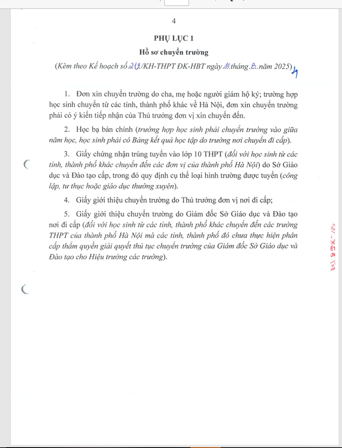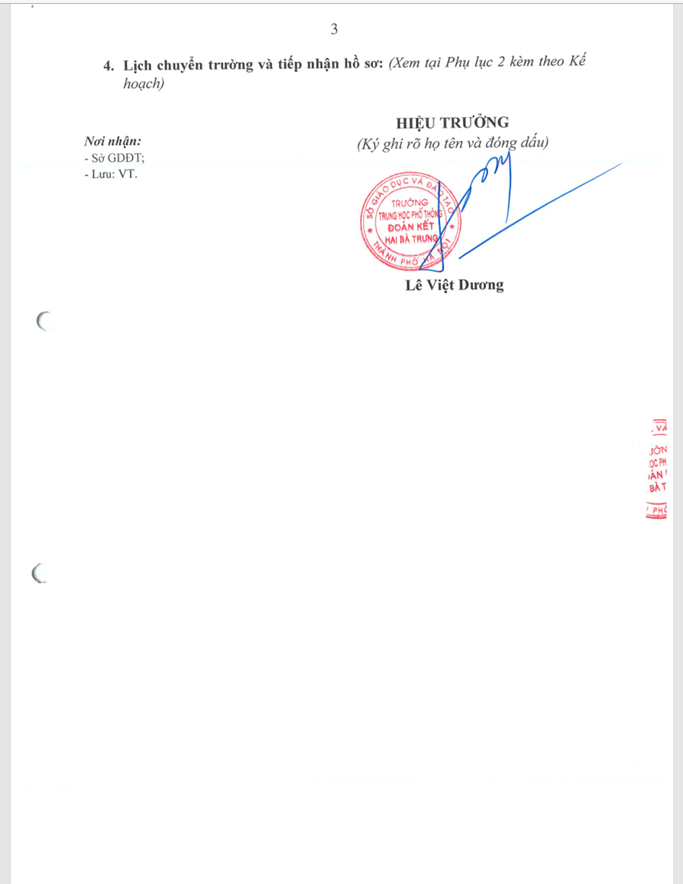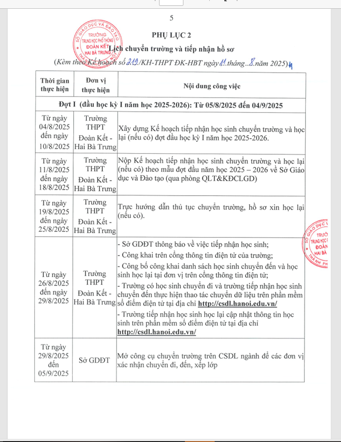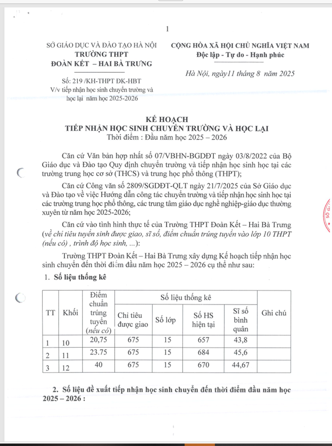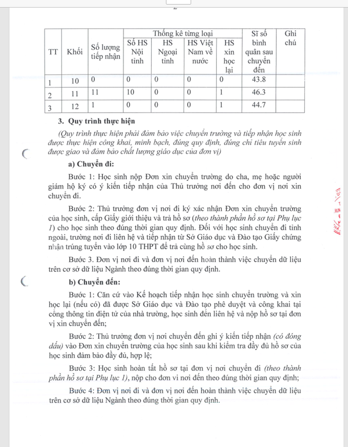 Kế hoạch tiếp nhận học sinh chuyển trường và học lại