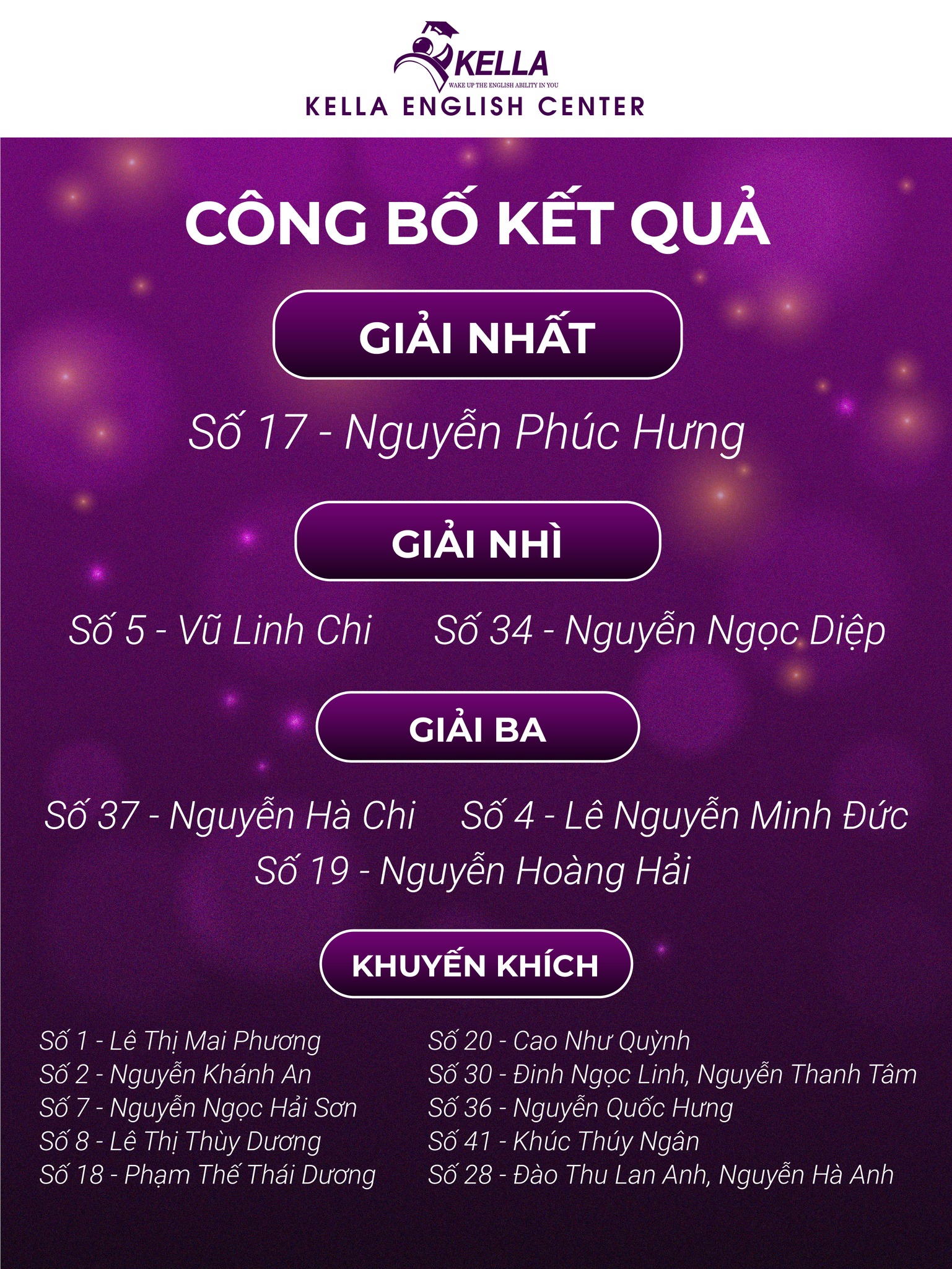 Cuộc thi diễn ra từ ngày 25/11/2022 – 30/12/2022, các bài dự thi hợp lệ, đạt yêu cầu được đăng trên Fan page của trung tâm Ngoại ngữ Kella từ 02-05/01/2023.