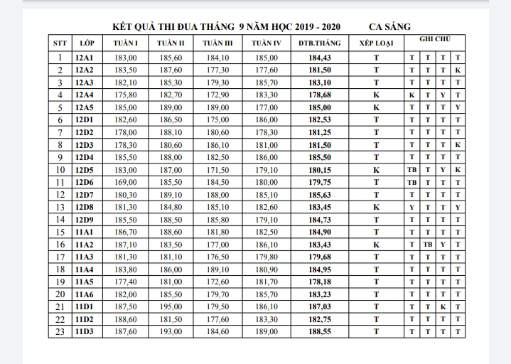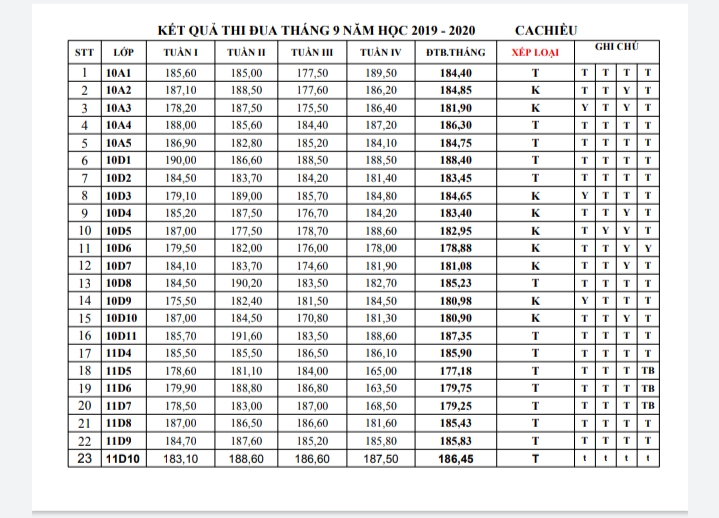 KẾT QUẢ THI ĐUA THÁNG 9 NĂM HỌC 2019 - 2020. 06/10/2019 Đăng bởi THPT ĐOÀN KẾT Bài viết cùng chủ đề Không có bài viết liên quan
