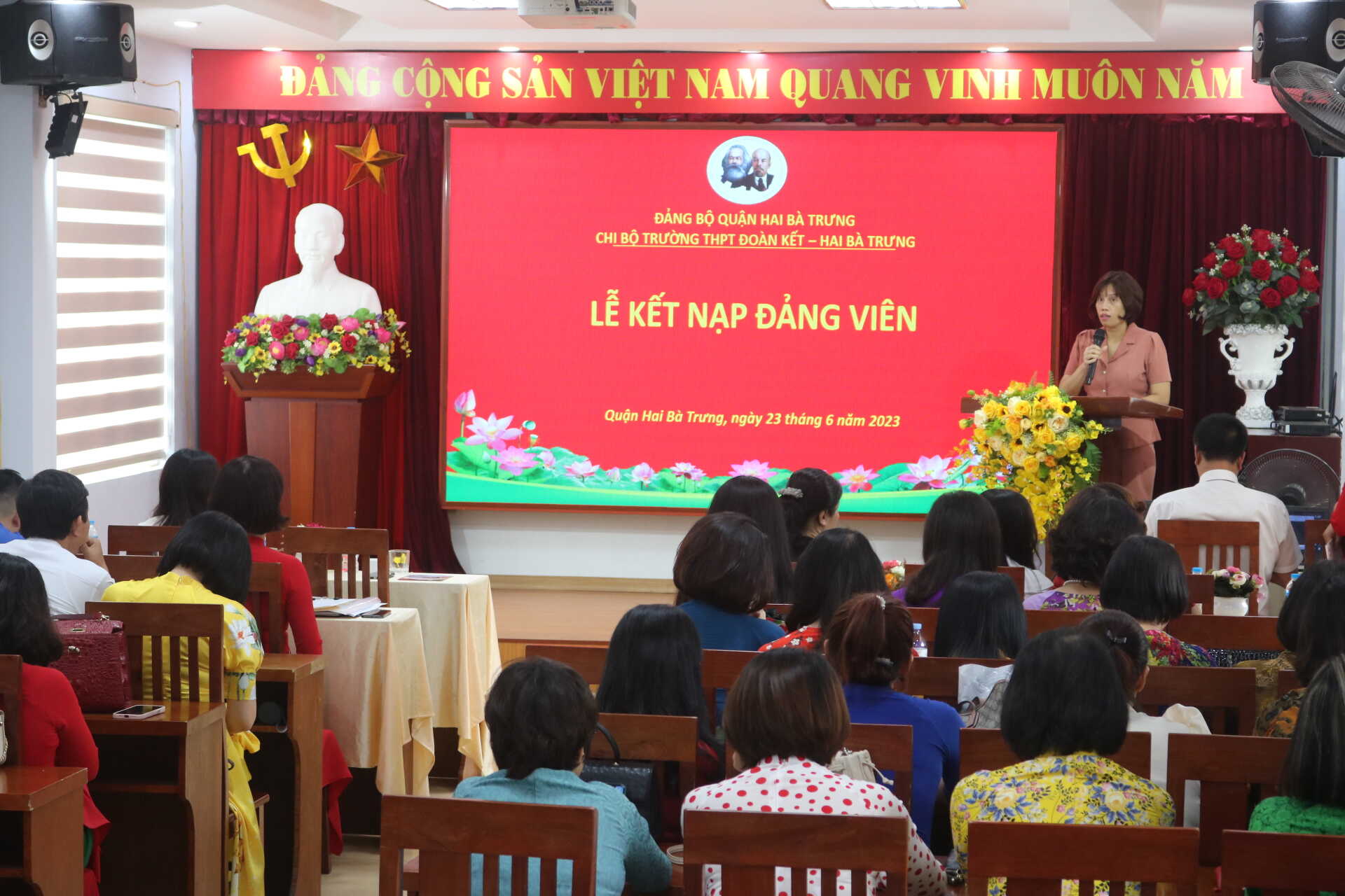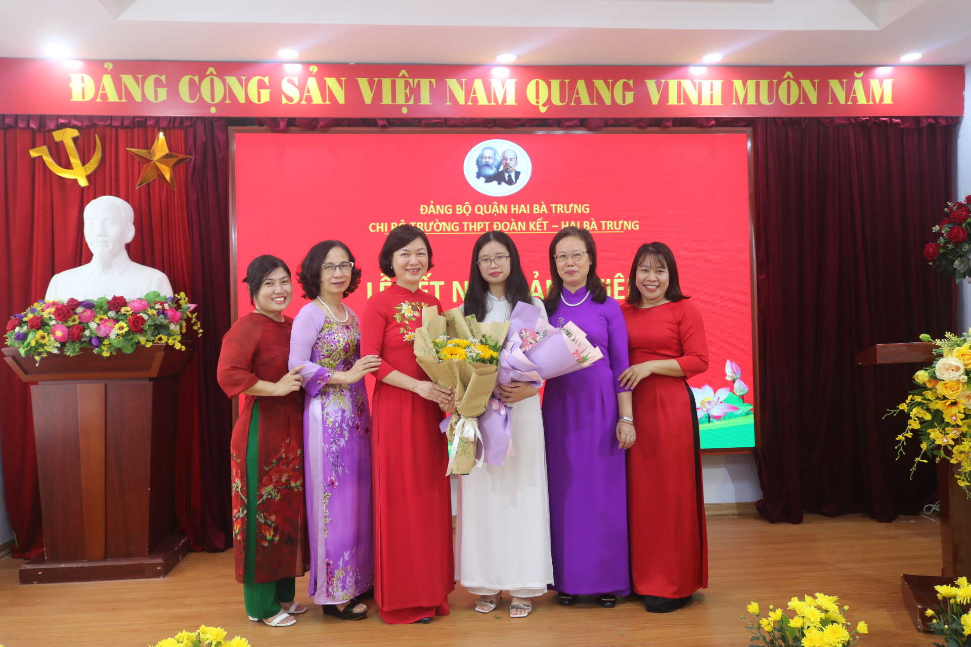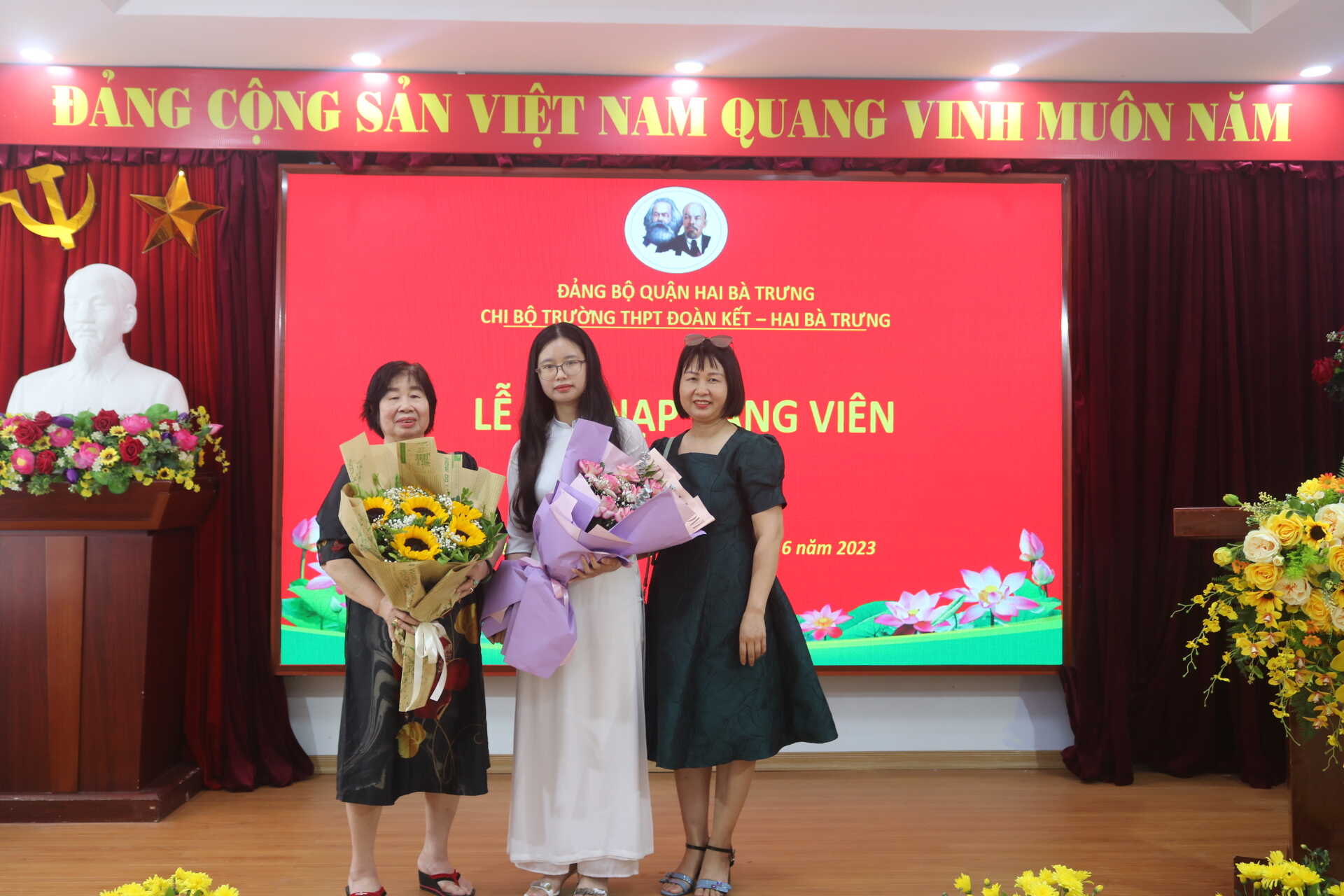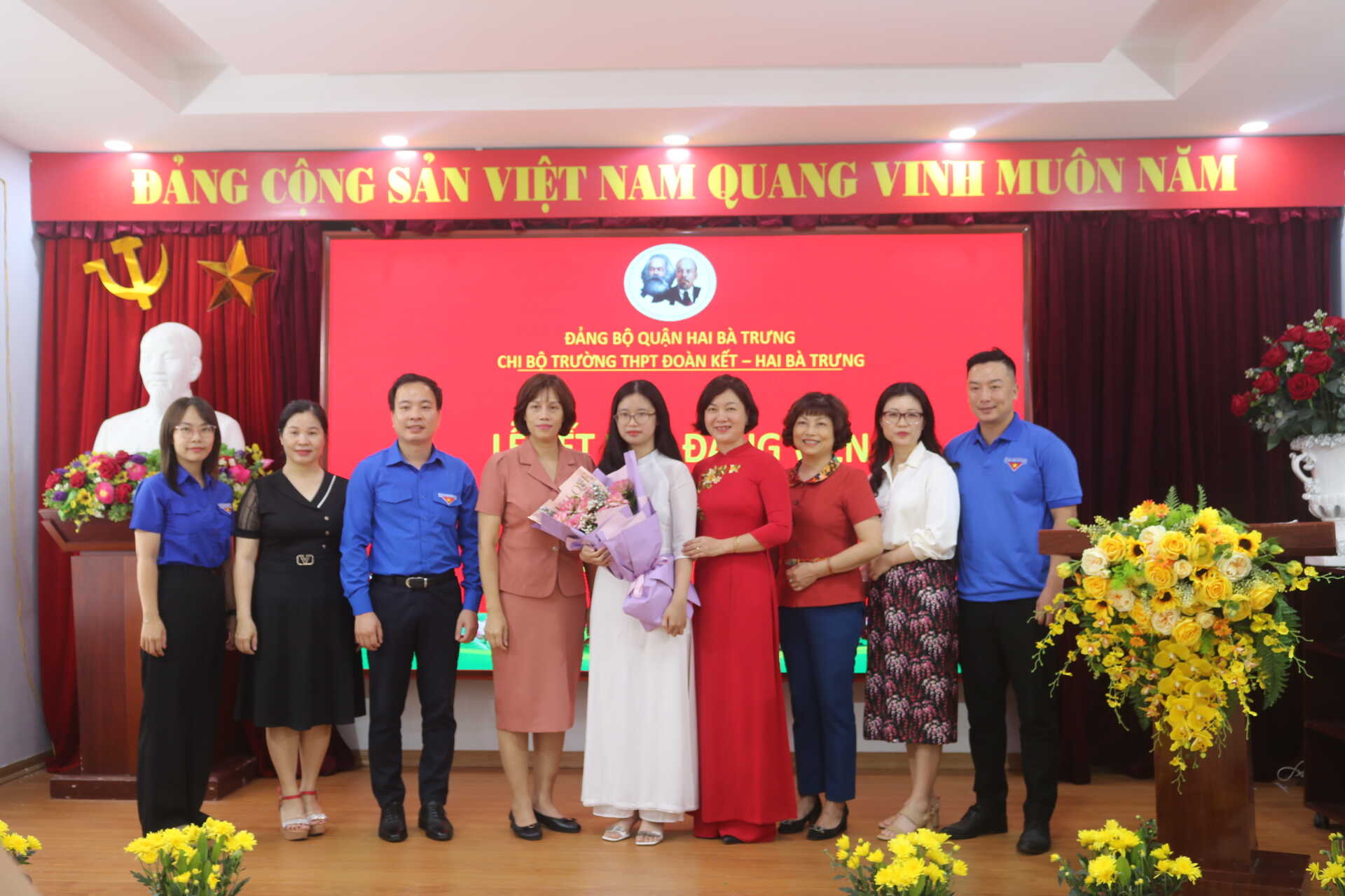Tại buổi lễ, lãnh đạo quận Hai Bà Trưng đã trao Quyết định kết nạp Đảng và tặng hoa chúc mừng em Trần Minh Phương, học sinh có thành tích xuất sắc trong quá trình học tập, rèn luyện và được sự quan tâm, giáo dục, giúp đỡ của các đảng viên trong Chi bộ Trường THPT Đoàn Kết - Hai Bà Trưng.