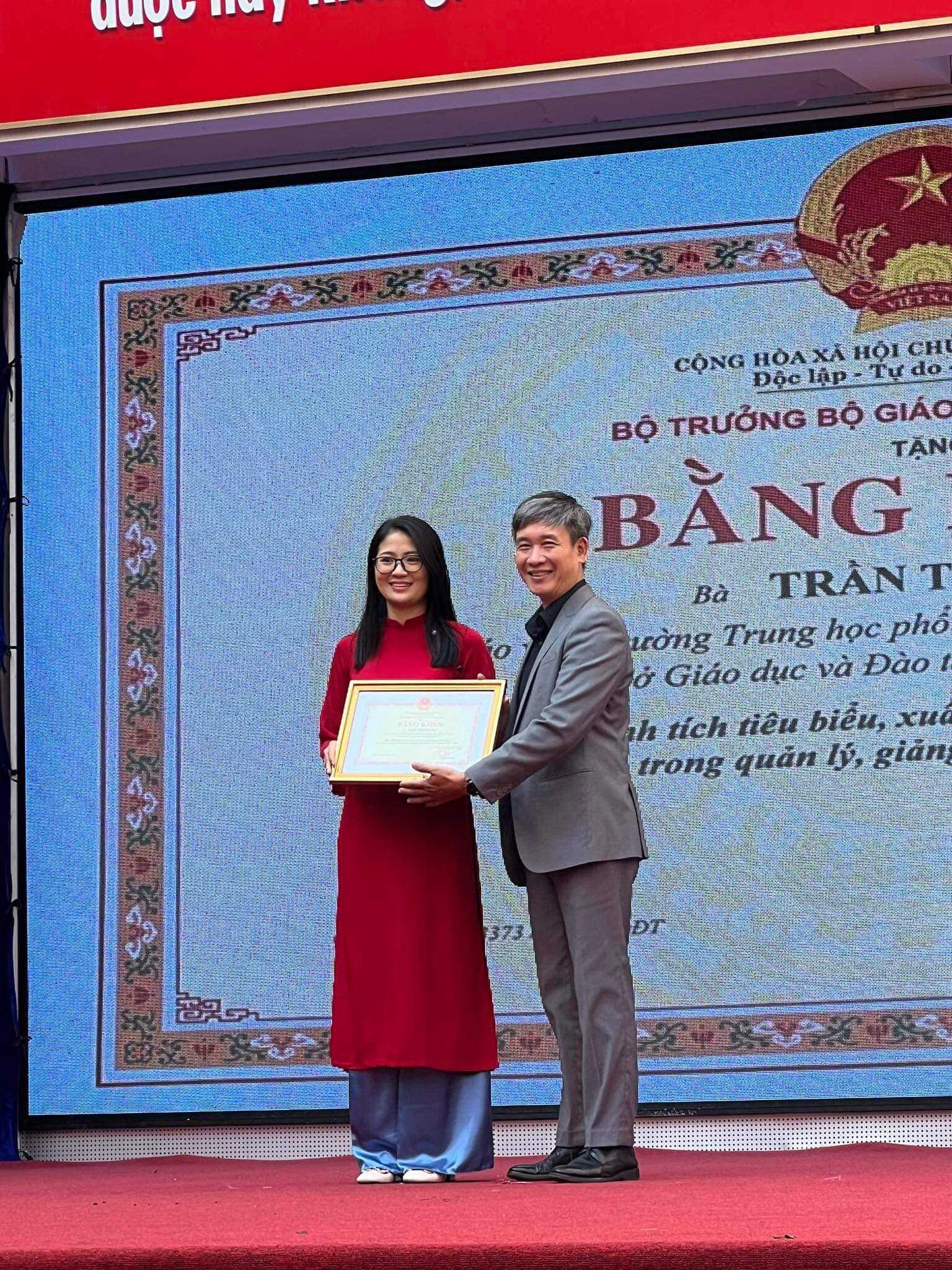 Về phía cá nhân, trong năm học 2022-2023, cô giáo Trần Thị Huyền, giáo viên môn Tin học đã được nhận Bằng khen của Bộ giáo dục và đào tạo vì đã có thành tích tiêu biểu, xuất sắc trong phong trào thi đua “Đổi mới, sáng tạo trong quản lý giảng dạy và học tập năm học 2022-2023”. Bằng khen được bộ trưởng Nguyễn Kim Sơn kí ngày 25/10/2023. Đây không chỉ là một vinh dự lớn đối với bản thân cô giáo Trần Thị Huyền, mà còn còn là niềm tự hào đối với trường ta.