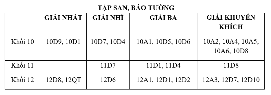 Các lớp nhận thưởng báo tường, tập san, kéo co