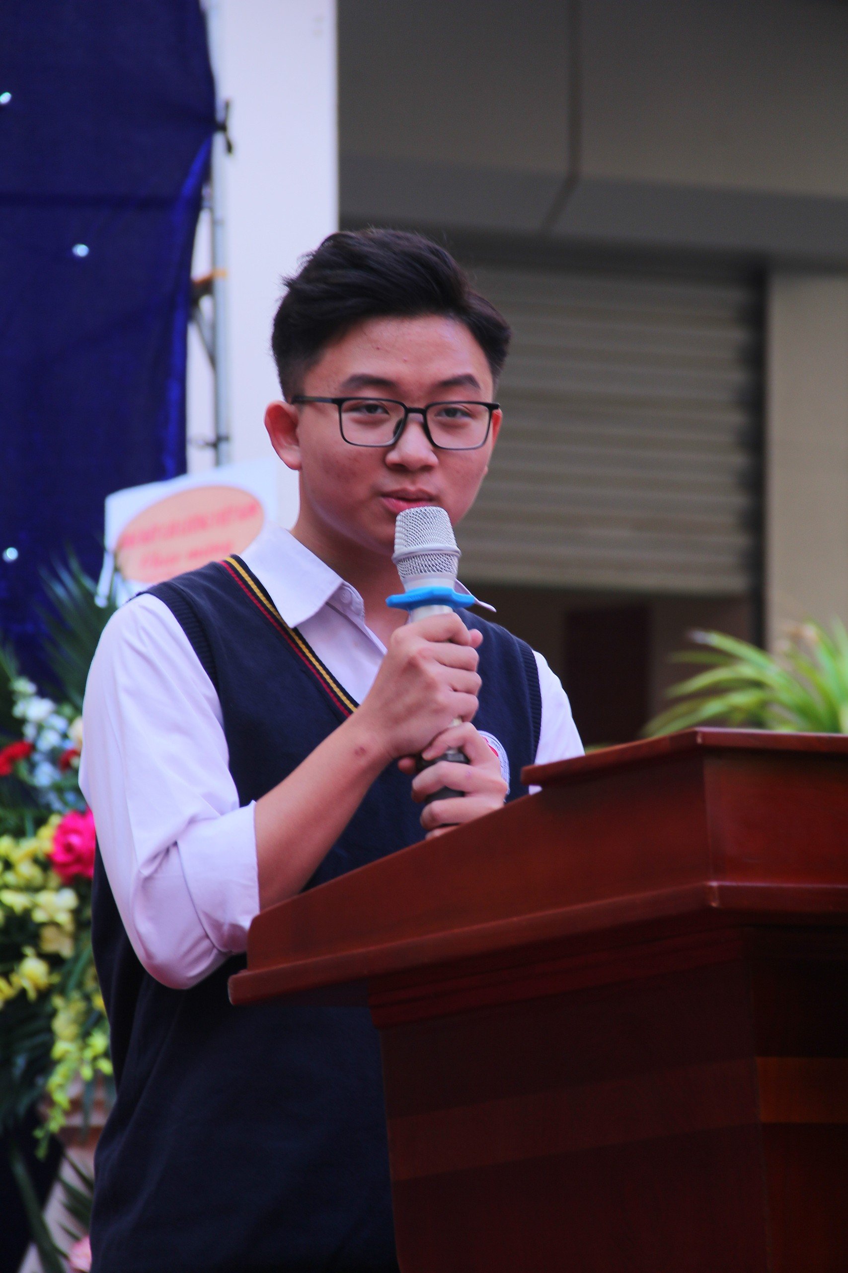 Để bày tỏ tấm lòng của mình cũng như thay lời tri ân của học sinh toàn trường. Học sinh Nguyễn Lê Thành Duy - học sinh lớp 12D1 đại diện cho toàn thể học sinh trường, lên phát biểu chúc mừng các thầy cô giáo.