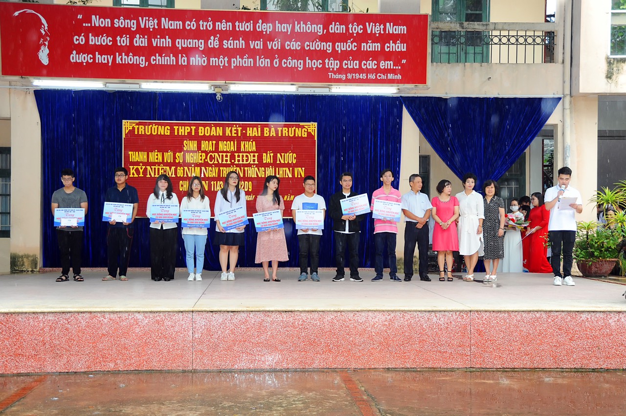 Ngay sau khi có kết quả Thi tốt nghiệp THPT năm 2022 và tuyển sinh đại học năm 2022, nhà trường đã lựa chọn 10 em học sinh Tiêu biểu xuất sắc ở các Khối thi cơ bản, cũng như có nhiều thành tích trong công tác phong trào, có tinh thần, nghị lực vươn lên trong cuộc sống để nhận học bổng.