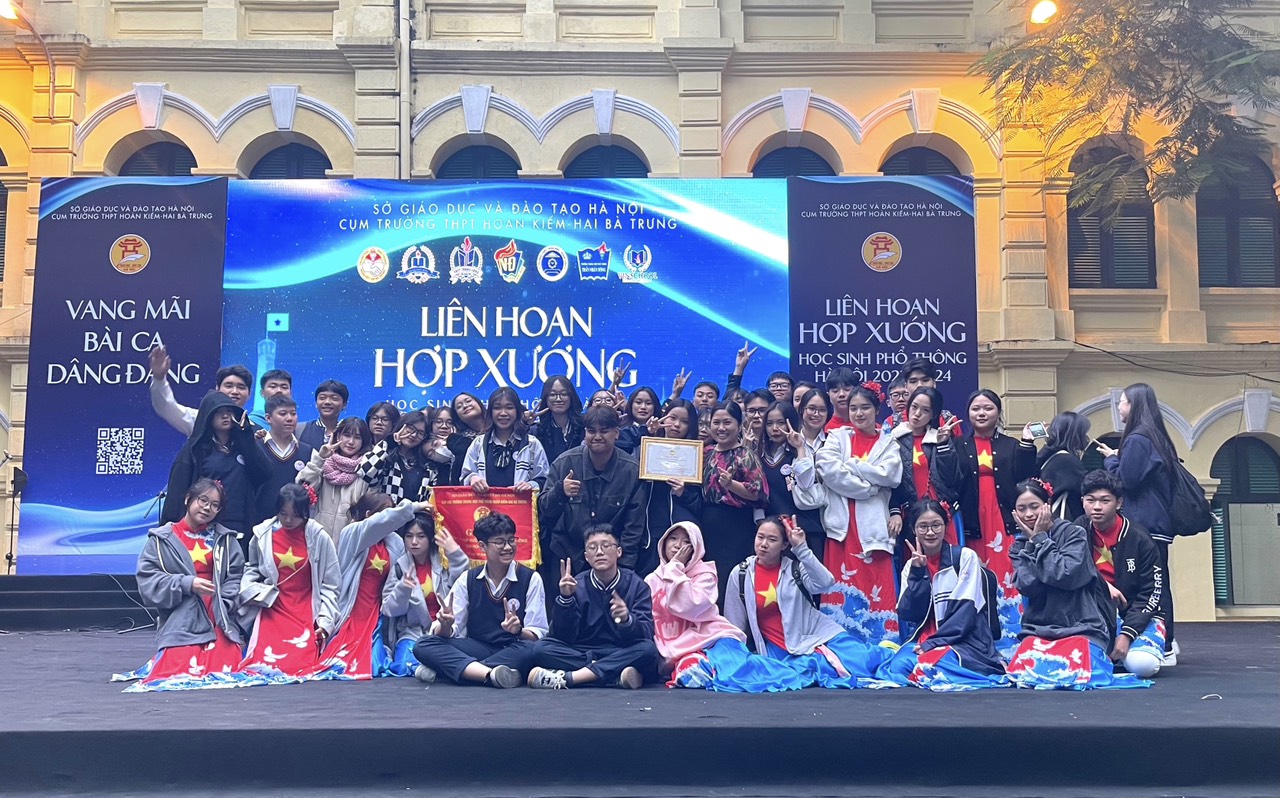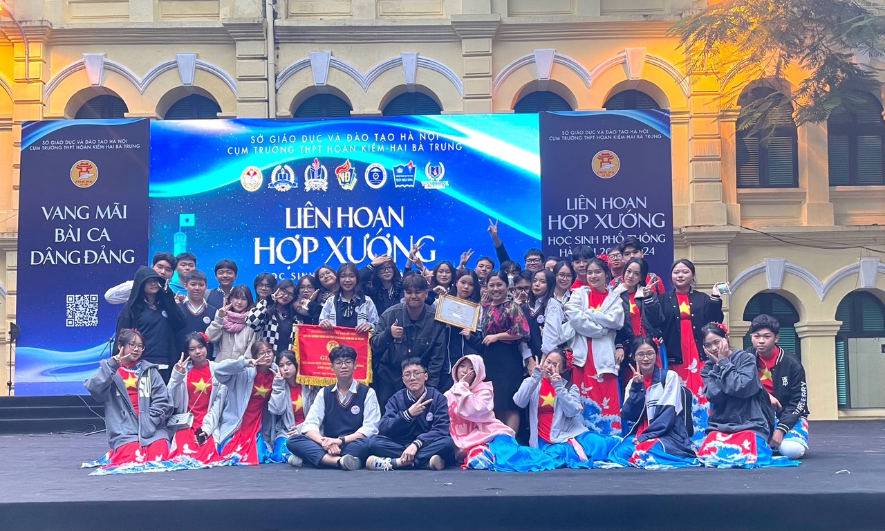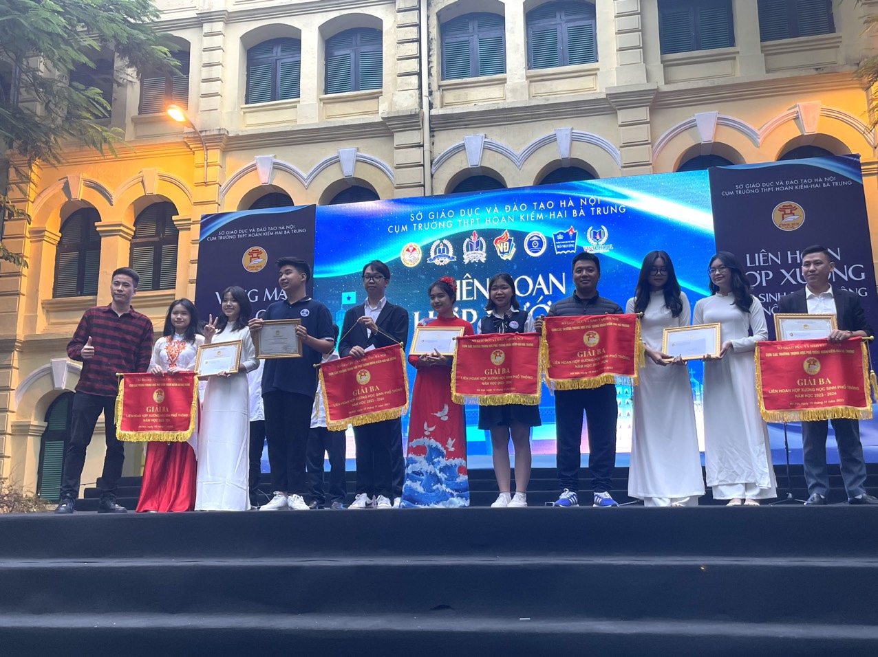 Học sinh trường THPT Đoàn Kết-Hai Bà Trưng tham gia Liên hoan với liên khúc "Những trái tim Việt Nam - Ngàn ước mơ Việt Nam" và đã giành được giải Ba.