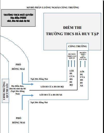 Sơ đồ phân luồng ngoài cổng trường và sơ đồ phòng thi tại địa điểm thi: Trường THCS Hà Huy Tập.