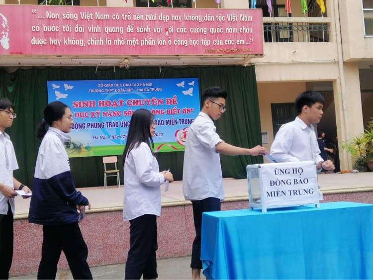 Ngày 02/11/2020, Ban giám hiệu trường THPT Đoàn Kết đã phát động chương trình Ủng hộ đồng bảo miền Trung bị thiệt hại nghiệm trọng do thiên tai. Kết quả, cán bộ giáo viên, nhân viên, học sinh nhà trường đã quyên góp được tổng số 38.874.000đ, trong đó ca sáng quyên góp được 14.370.000đ, ca chiều quyên góp được 18.748.000đ, cán bộ, giáo viên, nhân viên quyên góp được 5.750.000đ