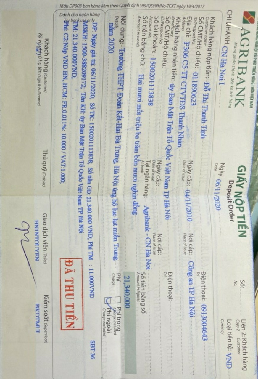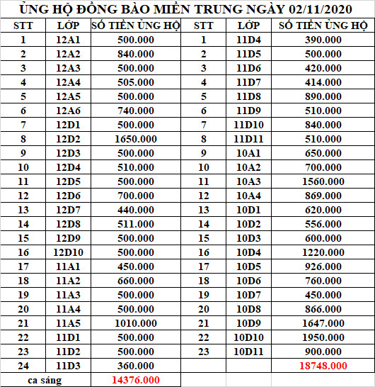 Toàn bộ số tiền 38.874.000 đã được quyên góp cho đồng bào miền Trung qua hai cơ quan
