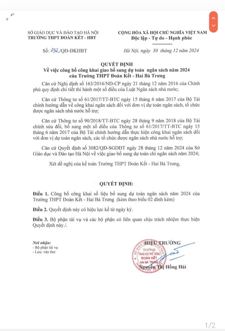 Quyết định về việc công bố công khai bổ sung dự toán ngân sách năm 2024