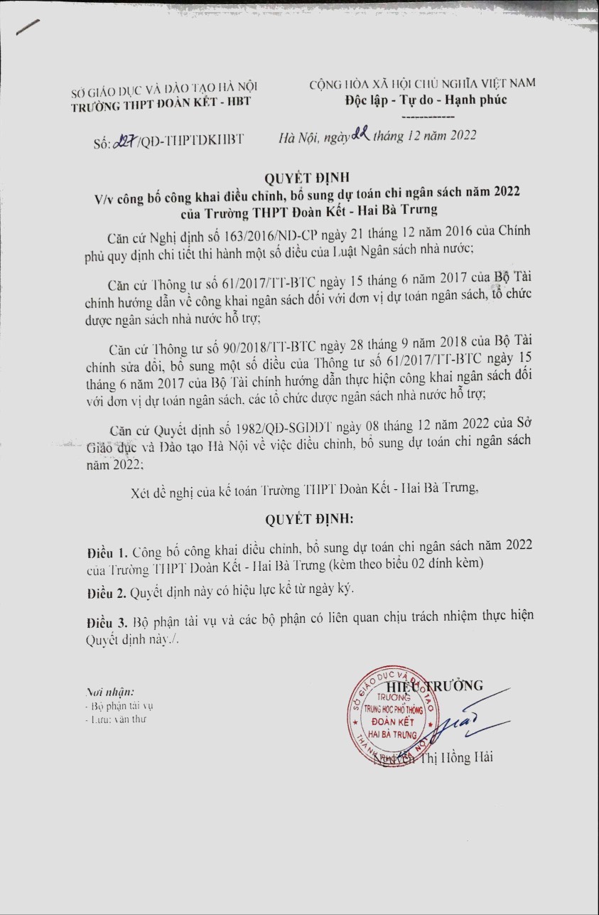 Quyết định về việc công bố công khai điều chỉnh, bổ sung dự toán chi ngân sách năm 2022