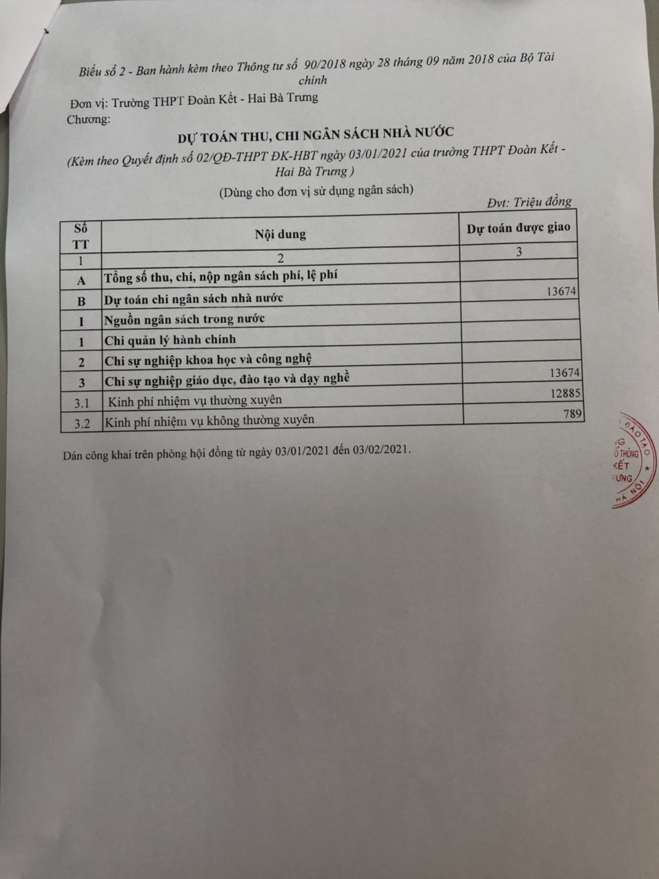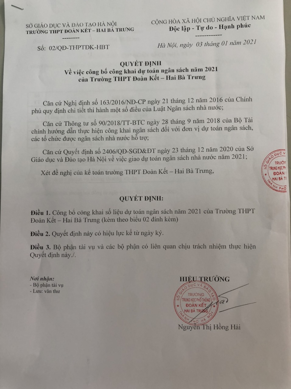 Quyết định về việc Công khai dự toán ngân sách 2021