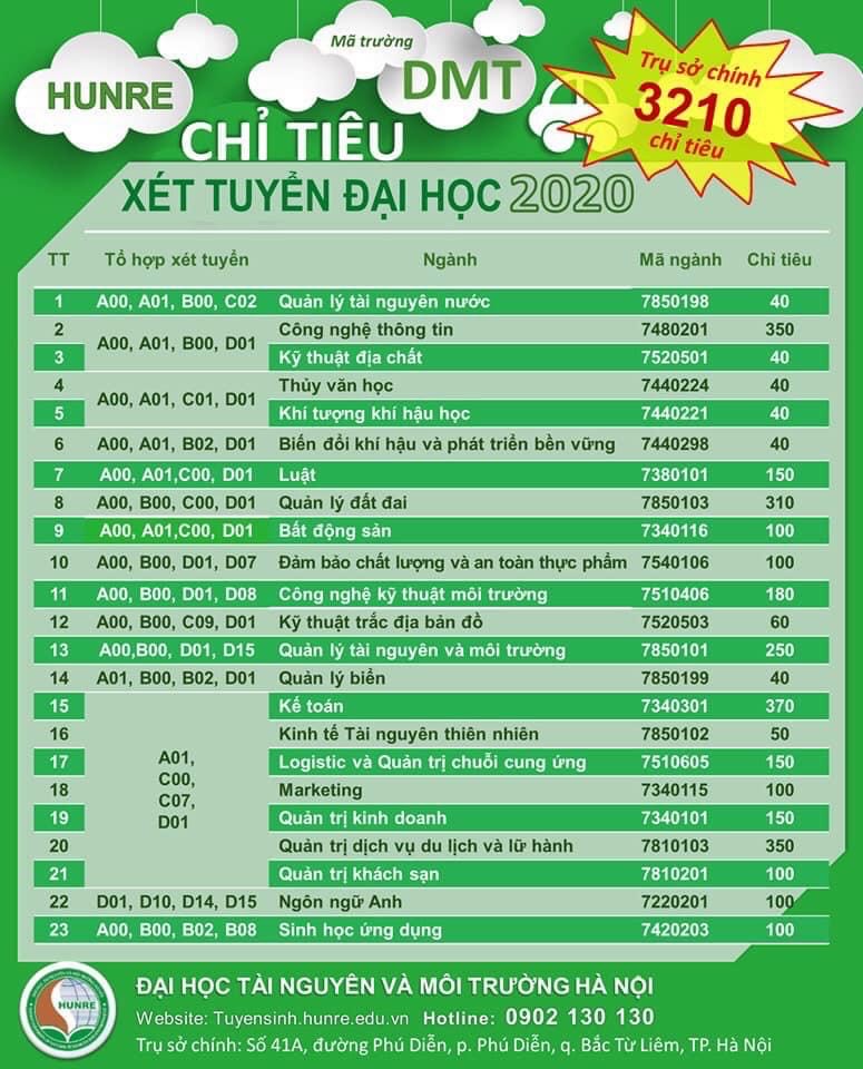 Thông tin tuyển sinh trường Đại Học Tài Nguyên Môi Trường Hà Nội.