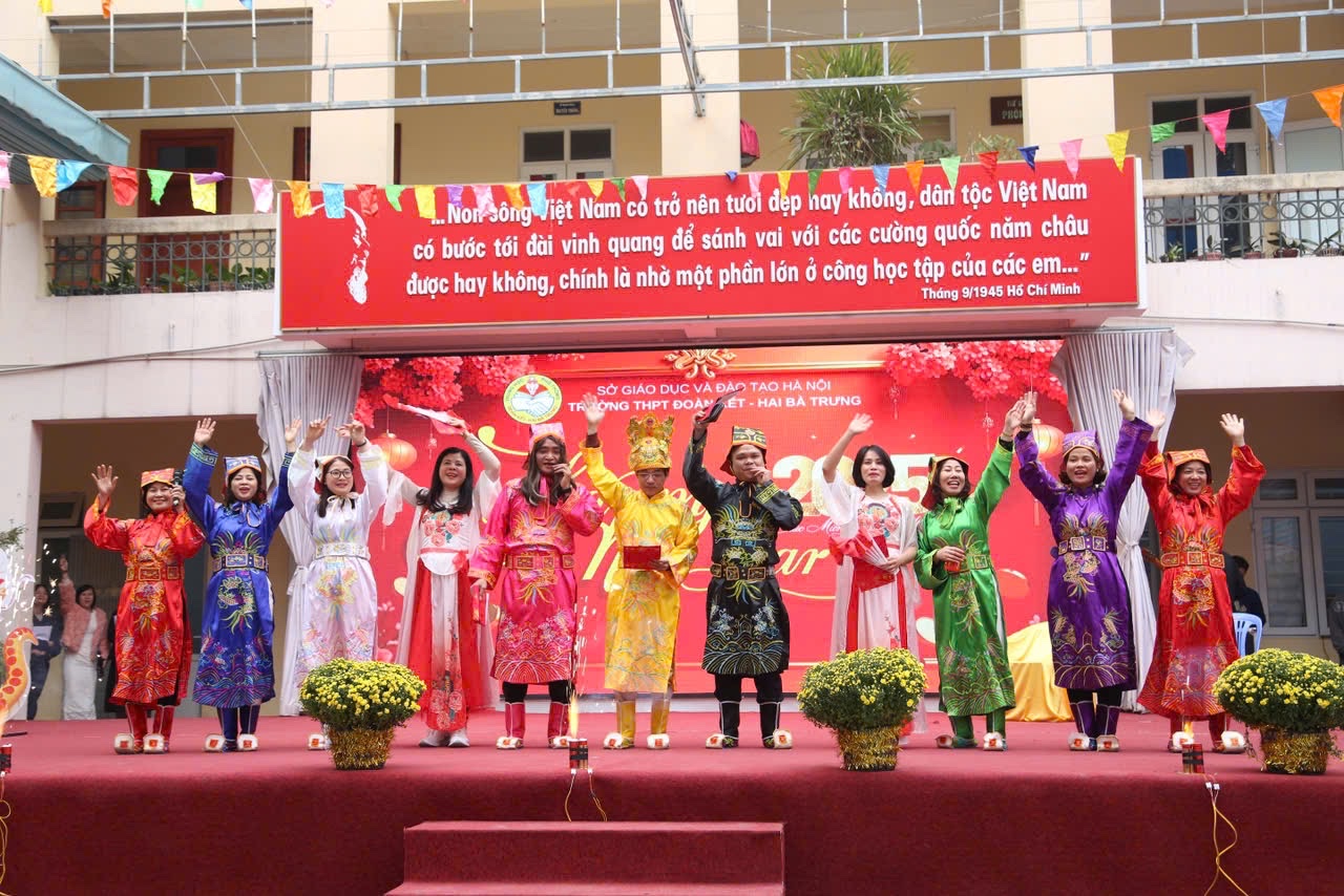 Song hành cùng thành tích chuyên môn, Tổ Lí – Tin – Công nghệ còn rất tích cực trong các hoạt động ngoại khóa và phong trào tập thể của nhà trường. Với tinh thần đoàn kết, nhiệt tình, các thầy cô đã góp phần tạo nên đời sống văn hóa phong phú cho nhà trường. Nổi bật là tiết mục nhảy sôi động, các cô giáo trẻ trong tổ đã hóa thân thành các cụ bà đáng yêu, mang lại năng lượng tích cực cho toàn thể học sinh và giáo viên. Đặc biệt, vở kịch tại “Hội chợ Xuân 2025” do các thầy cô trong tổ tự biên kịch, dàn dựng và trực tiếp diễn xuất đã để lại ấn tượng lớn, đem đến những phút giây thư giãn, đồng thời truyền tải nhiều thông điệp ý nghĩa. Những hoạt động này đã khẳng định sự sáng tạo, gắn kết và tinh thần cống hiến hết mình của tập thể tổ Lí – Tin – Công nghệ.