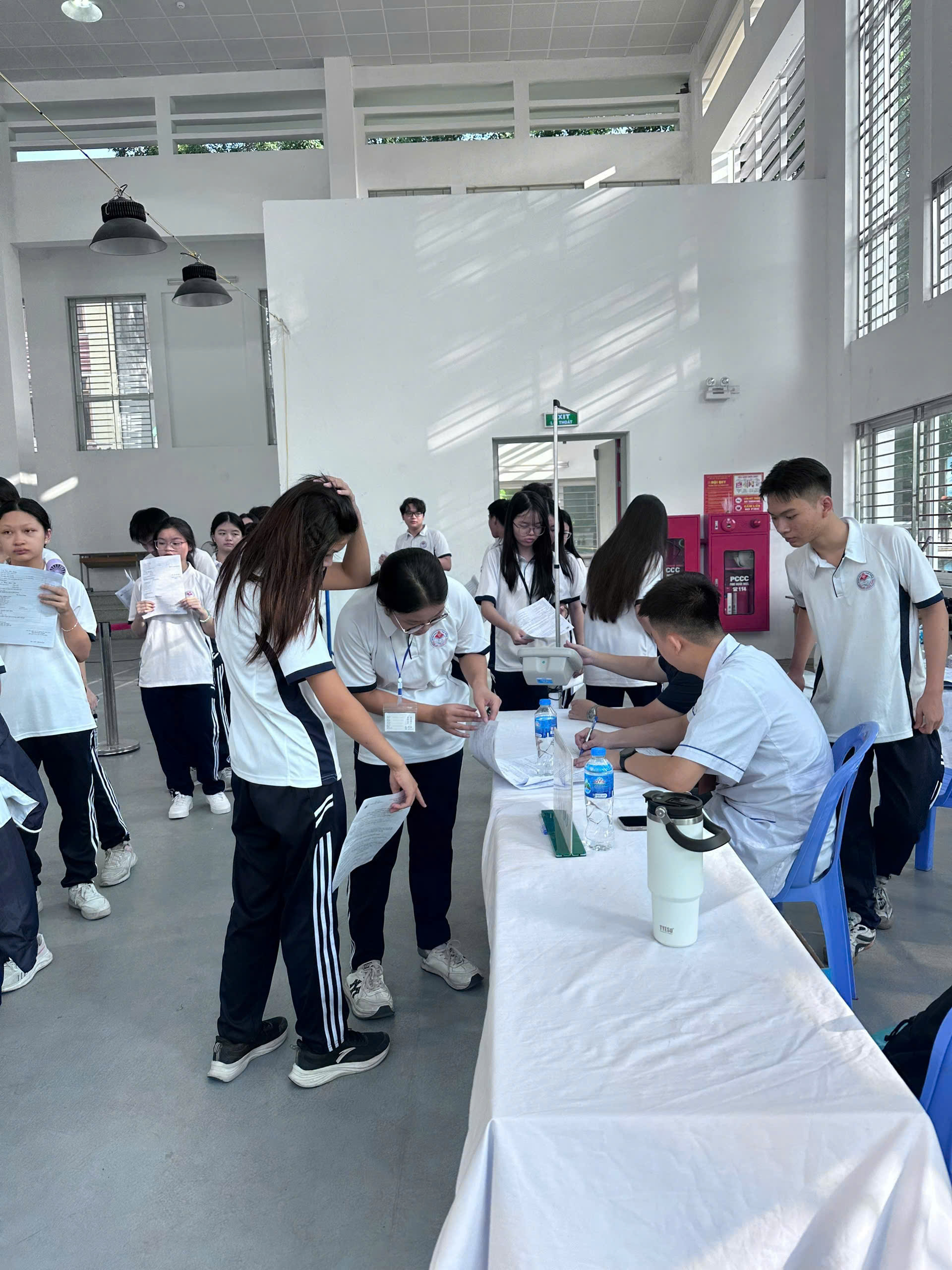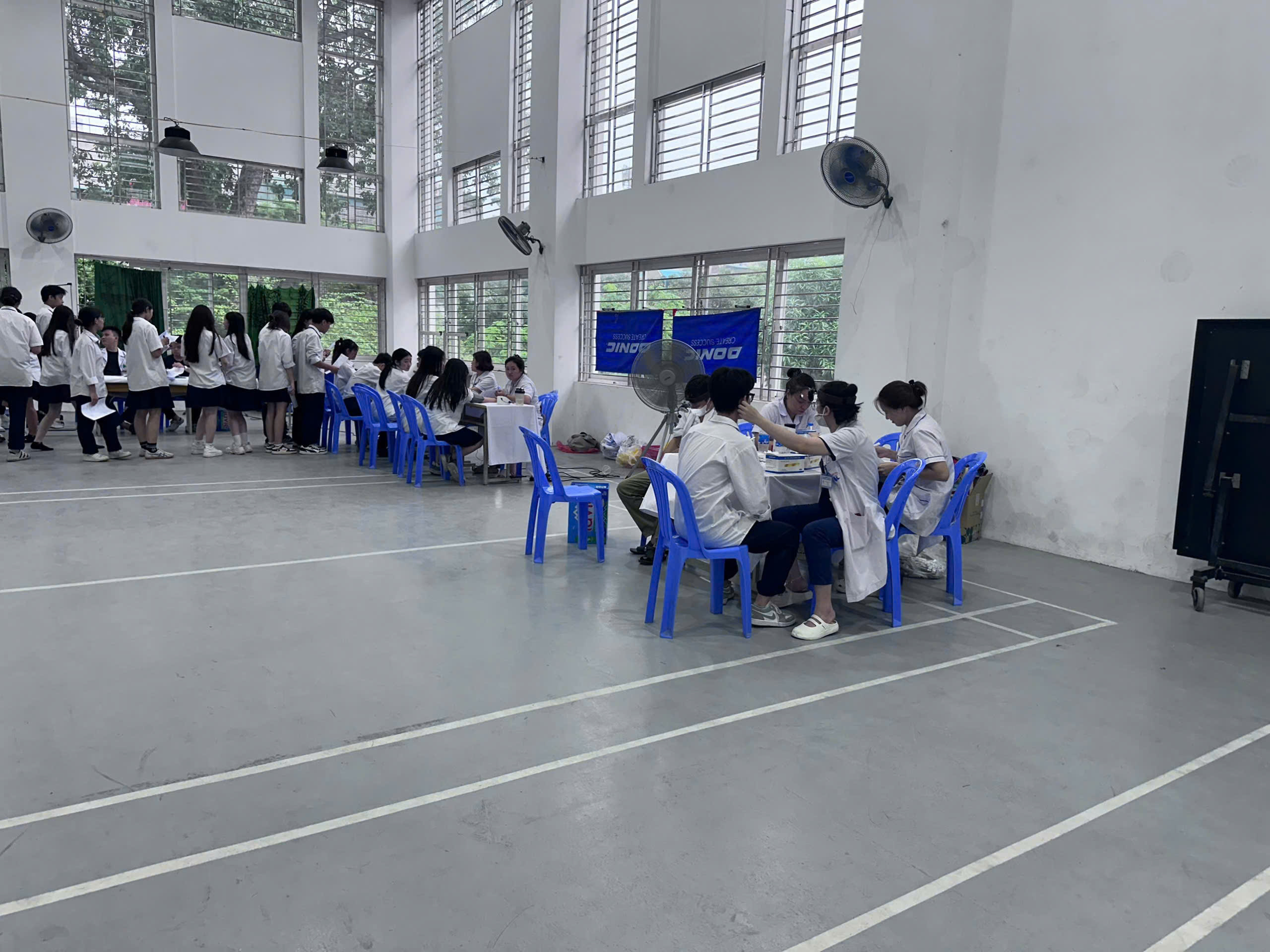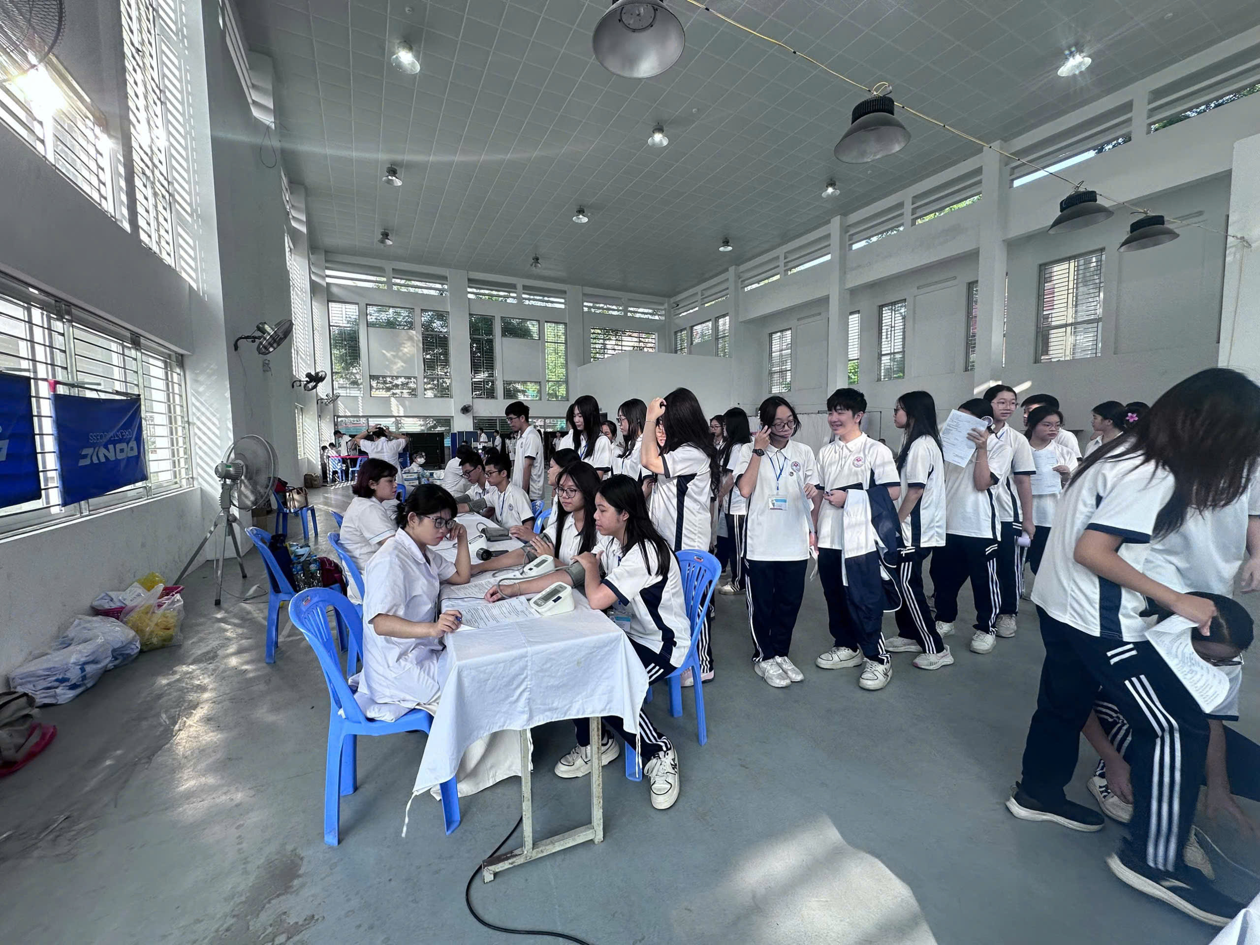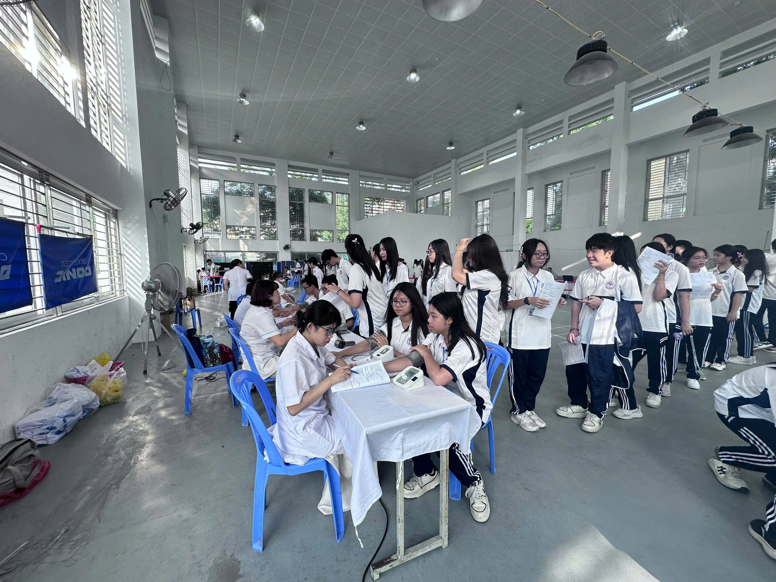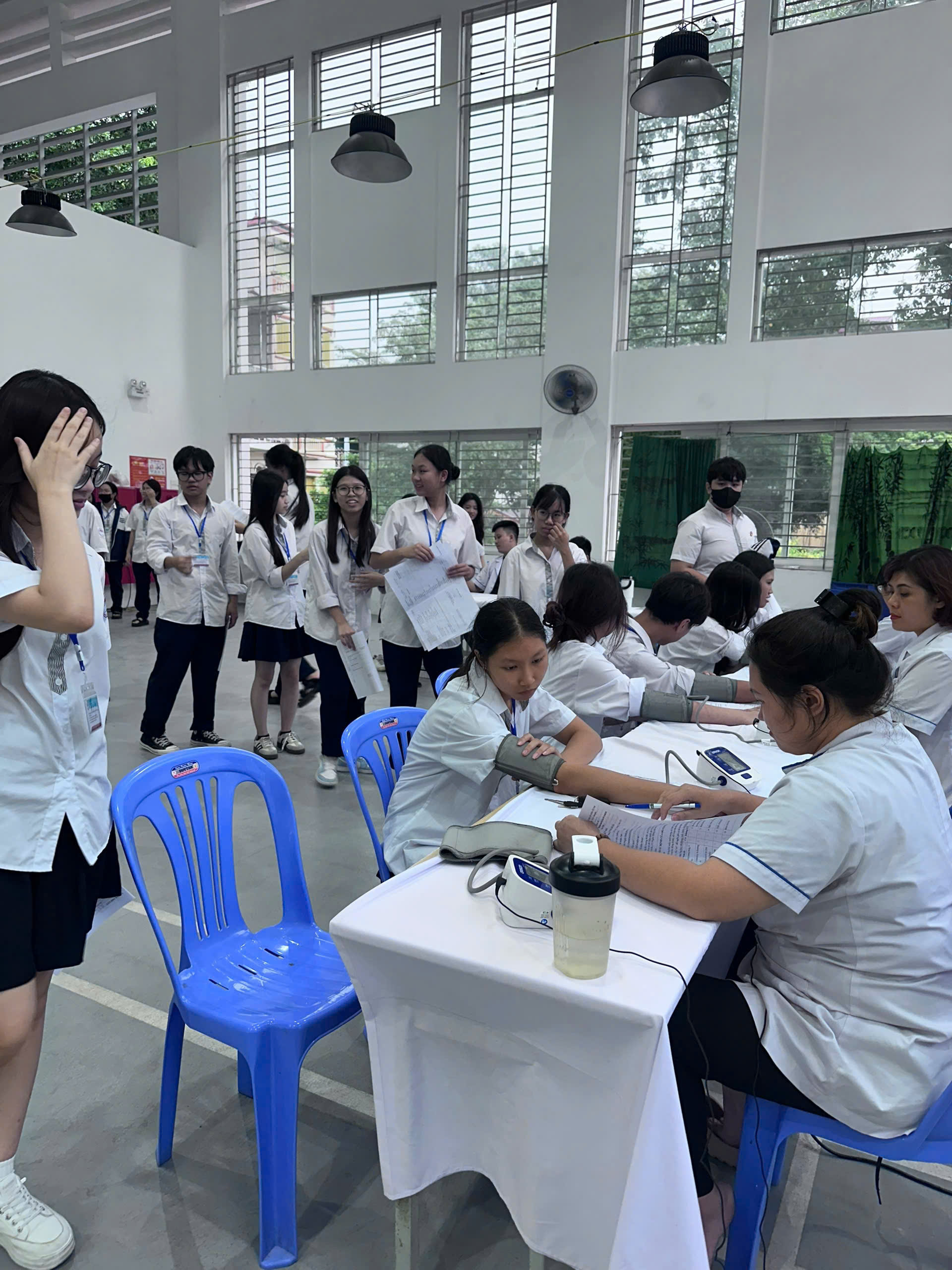 Nhà trường đã bố trí lịch khám khoa học, hợp lý giữa các khối lớp để đảm bảo trật tự và thuận tiện cho học sinh. Các giáo viên chủ nhiệm thông báo và nhắc nhở phụ huynh, học sinh trong lớp tham gia đầy đủ nhằm đảm bảo quyền lợi của các em. Đội ngũ giám thị, nhân viên y tế và giáo viên có tiết trùng giờ khám đều phối hợp tích cực, hỗ trợ điều phối và quản lý học sinh trong suốt quá trình diễn ra hoạt động.