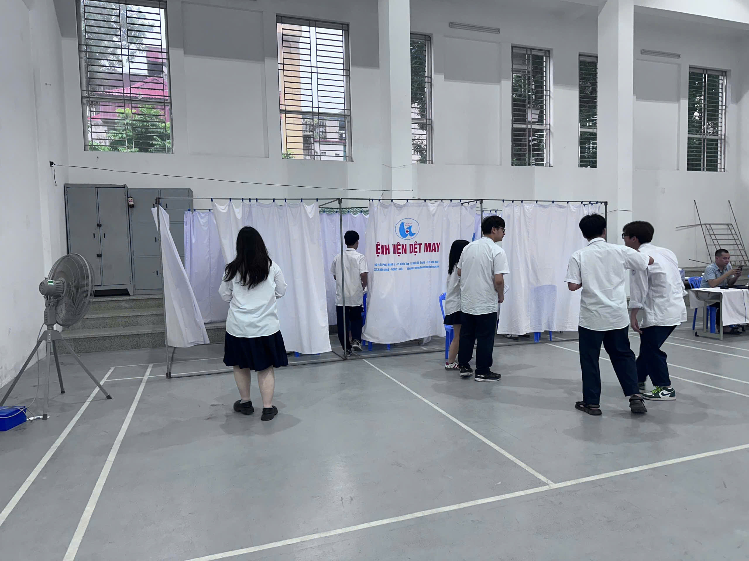 Công tác khám được tổ chức tại nhà thể chất của trường, với sự tham gia của đội ngũ y, bác sĩ chuyên môn cao từ Bệnh viện Dệt May. Nội dung khám gồm nhiều hạng mục: khám nội, tim mạch, đo huyết áp, cân đo chiều cao – cân nặng, kiểm tra mắt, tai – mũi – họng và răng – hàm – mặt.