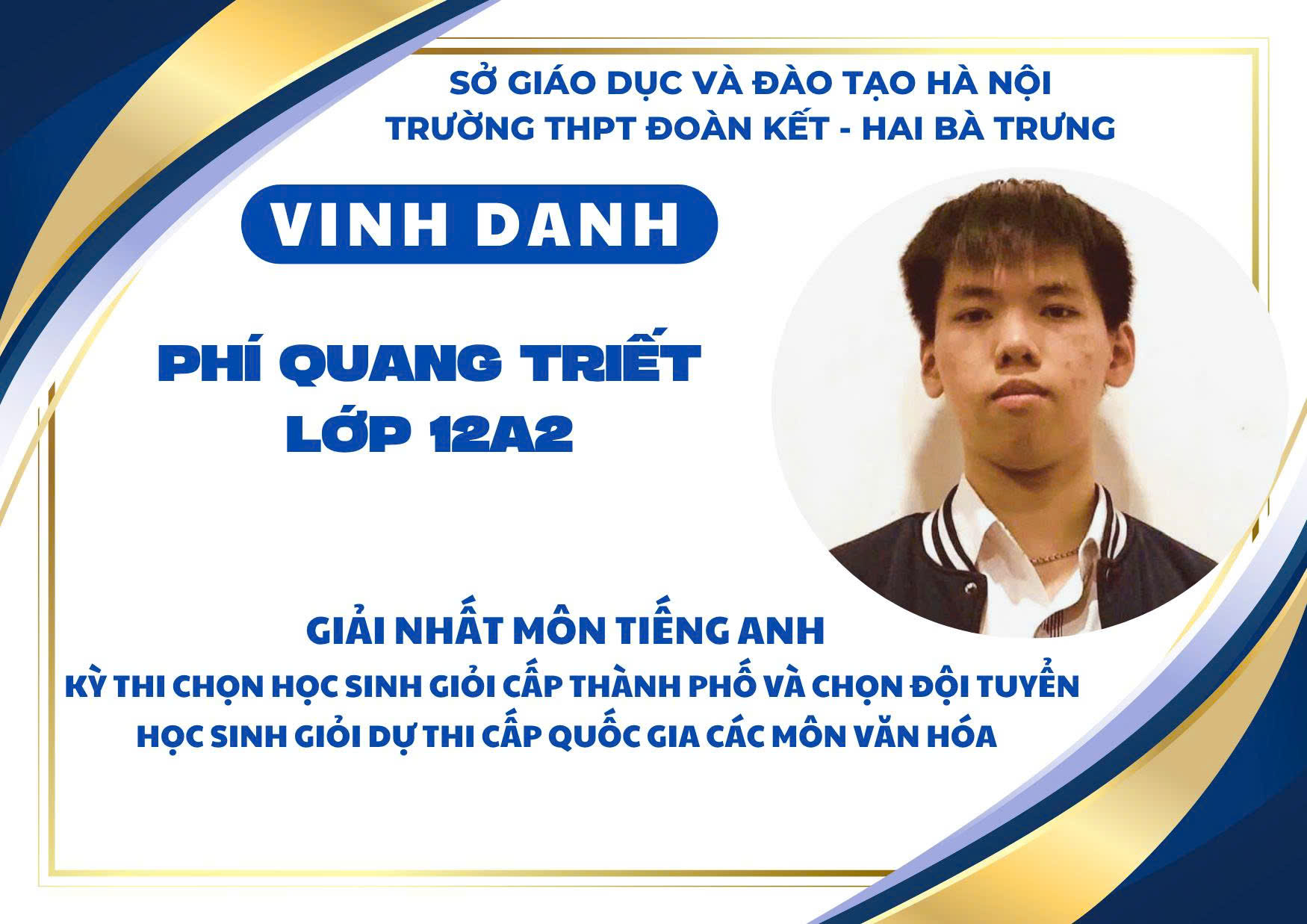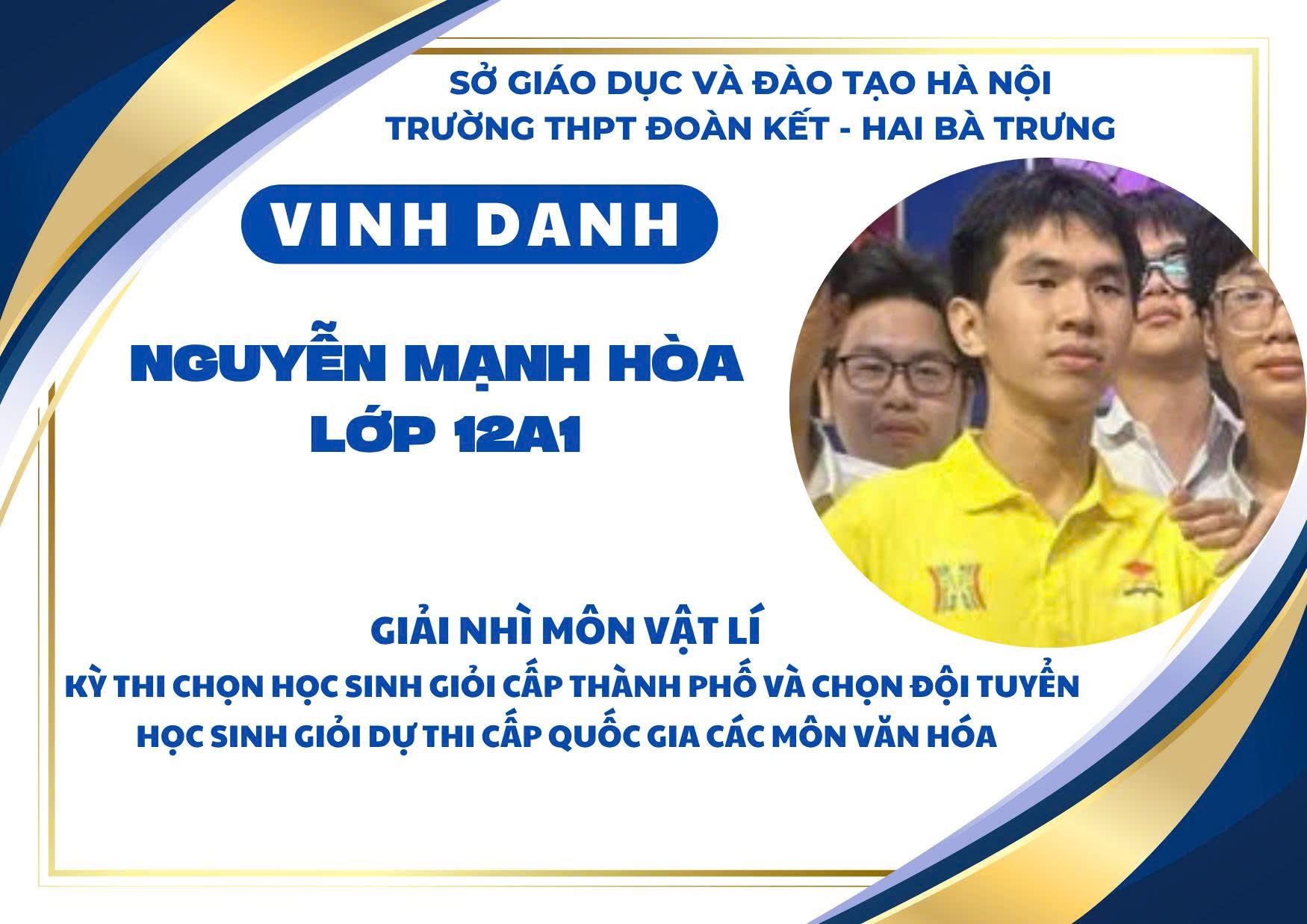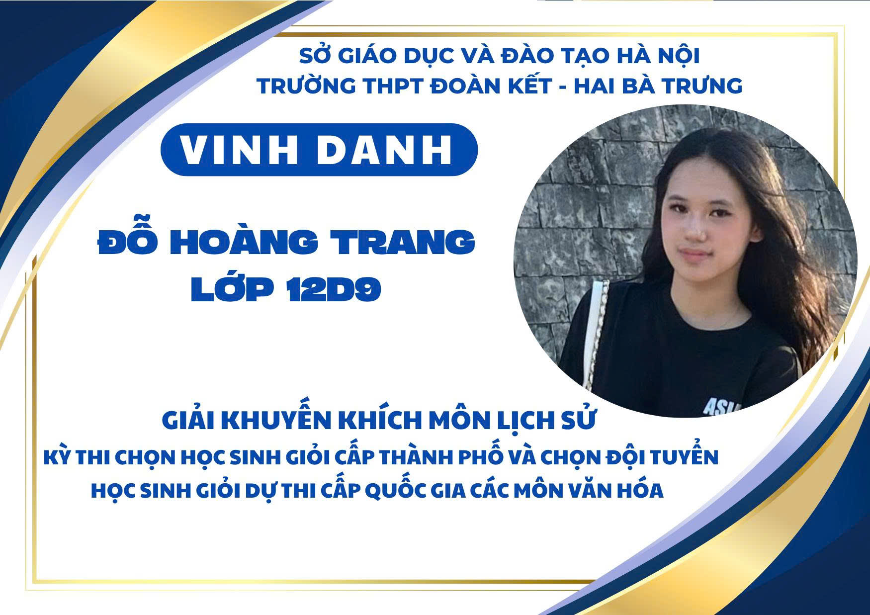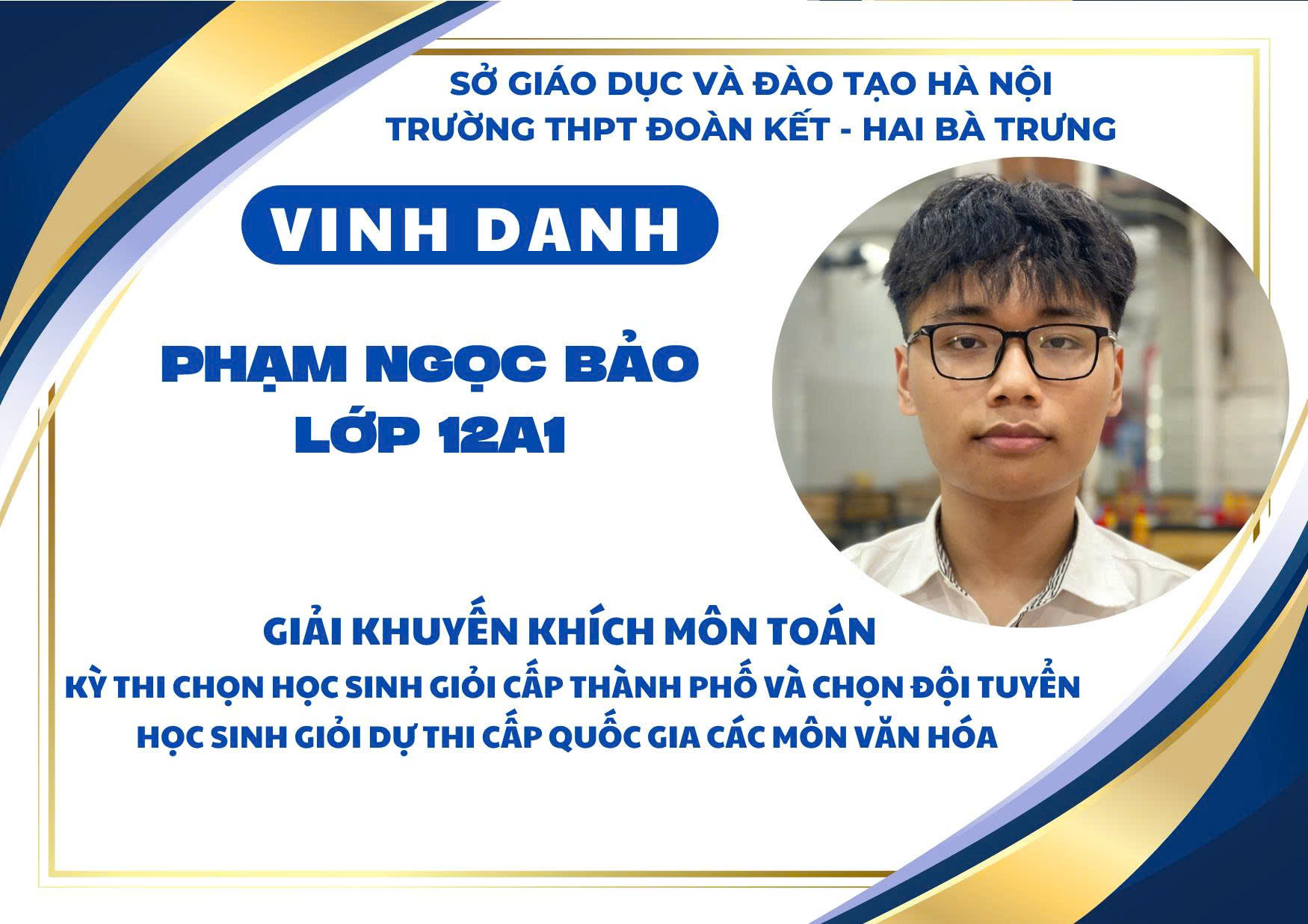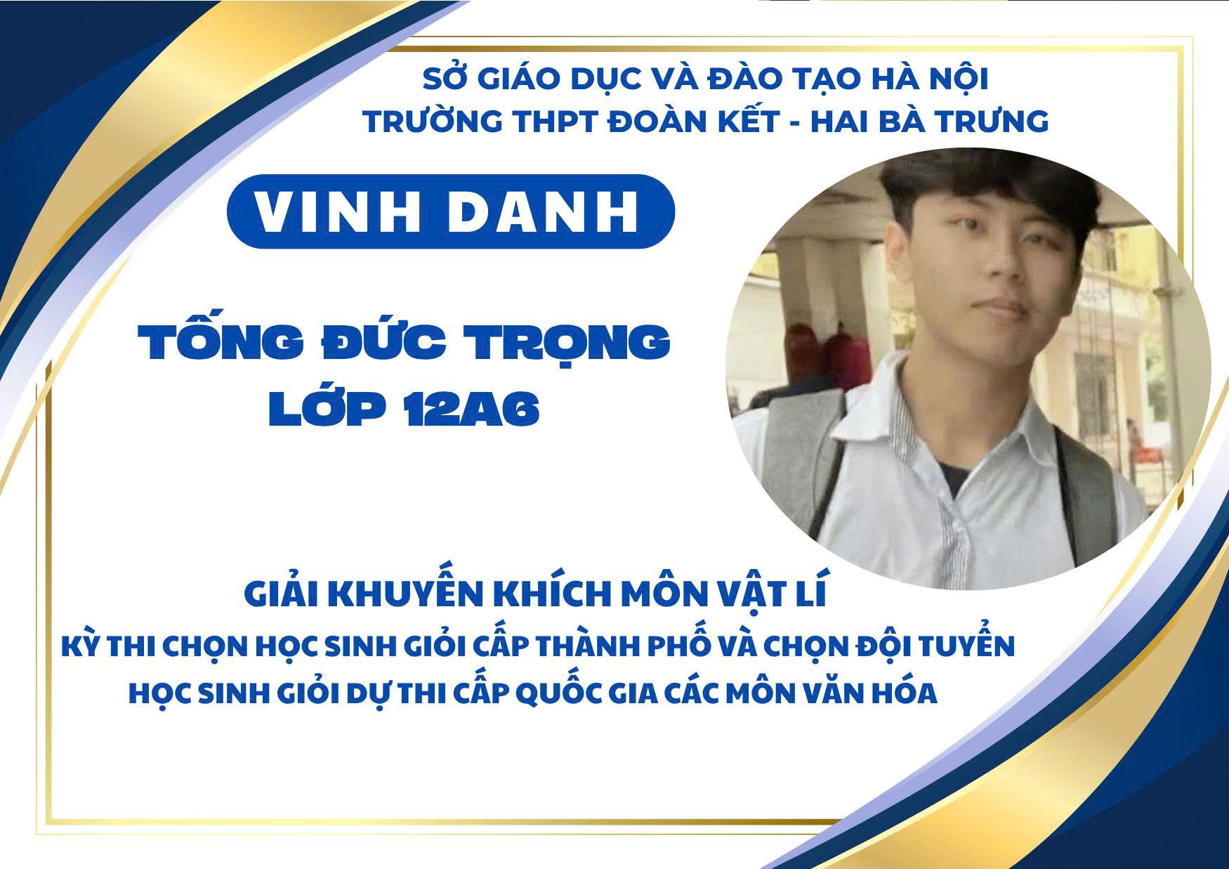 Nhà trường xin chúc mừng các em học sinh đạt giải và biểu dương các thầy cô giáo đã đồng hành tận tụy trong suốt quá trình ôn luyện. Thành tích ấy không chỉ là niềm tự hào của cá nhân, gia đình và tập thể mà còn góp phần khẳng định vị thế, uy tín của THPT Đoàn Kết – Hai Bà Trưng trong phong trào học sinh giỏi của Thủ đô.