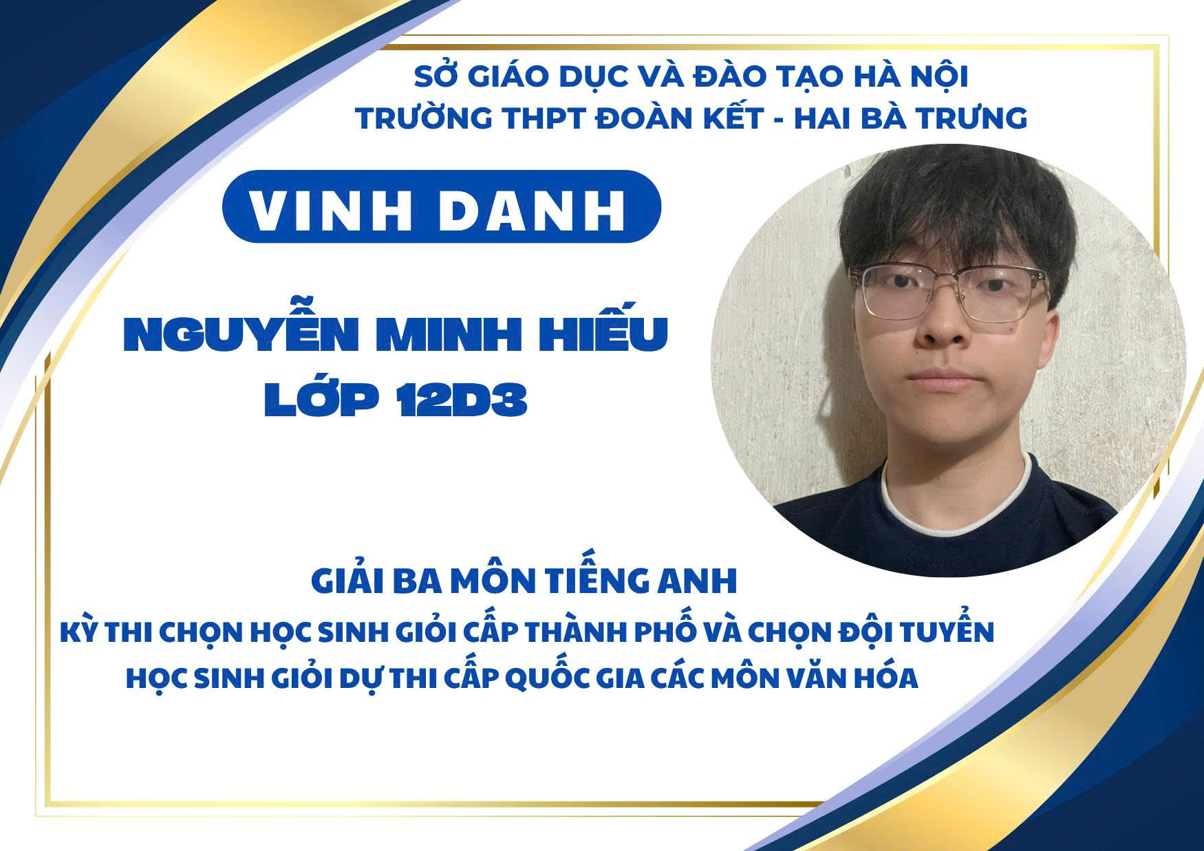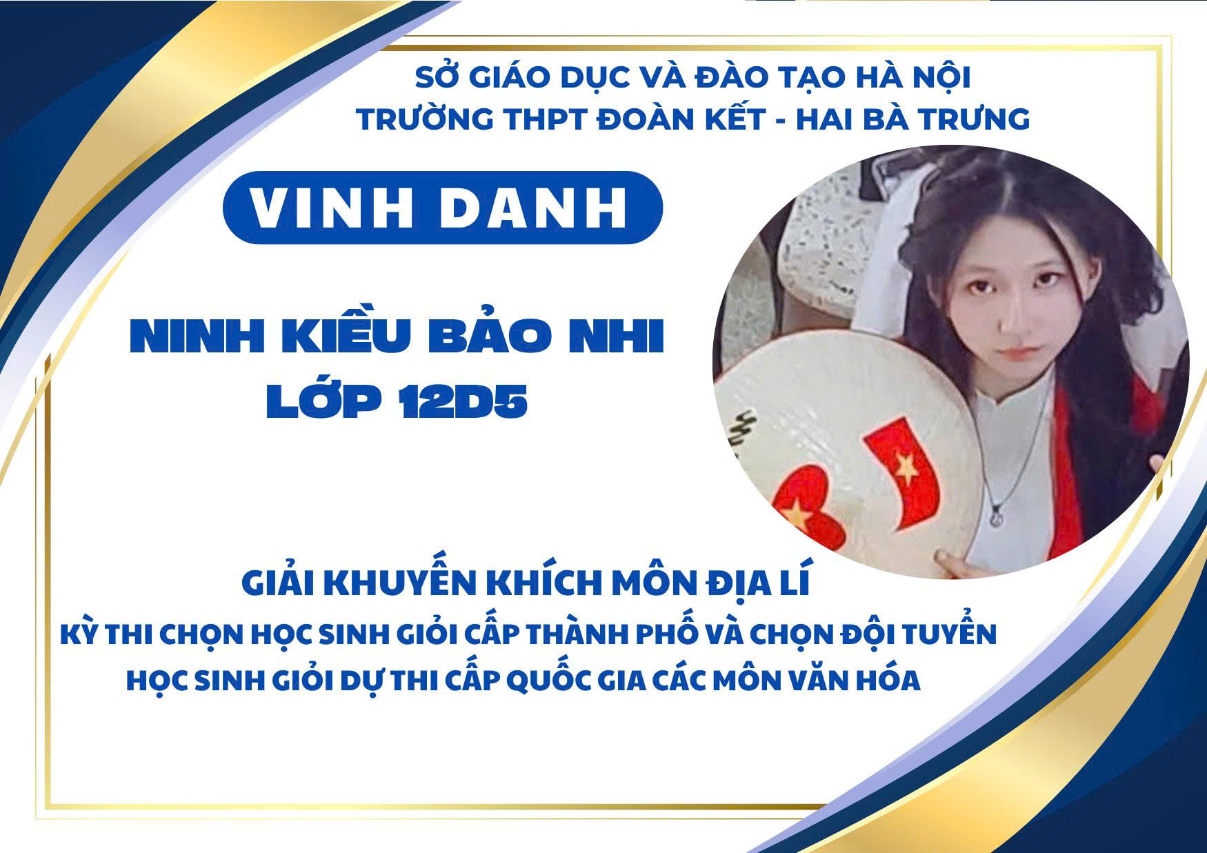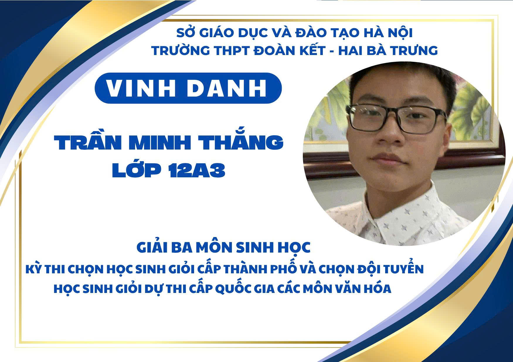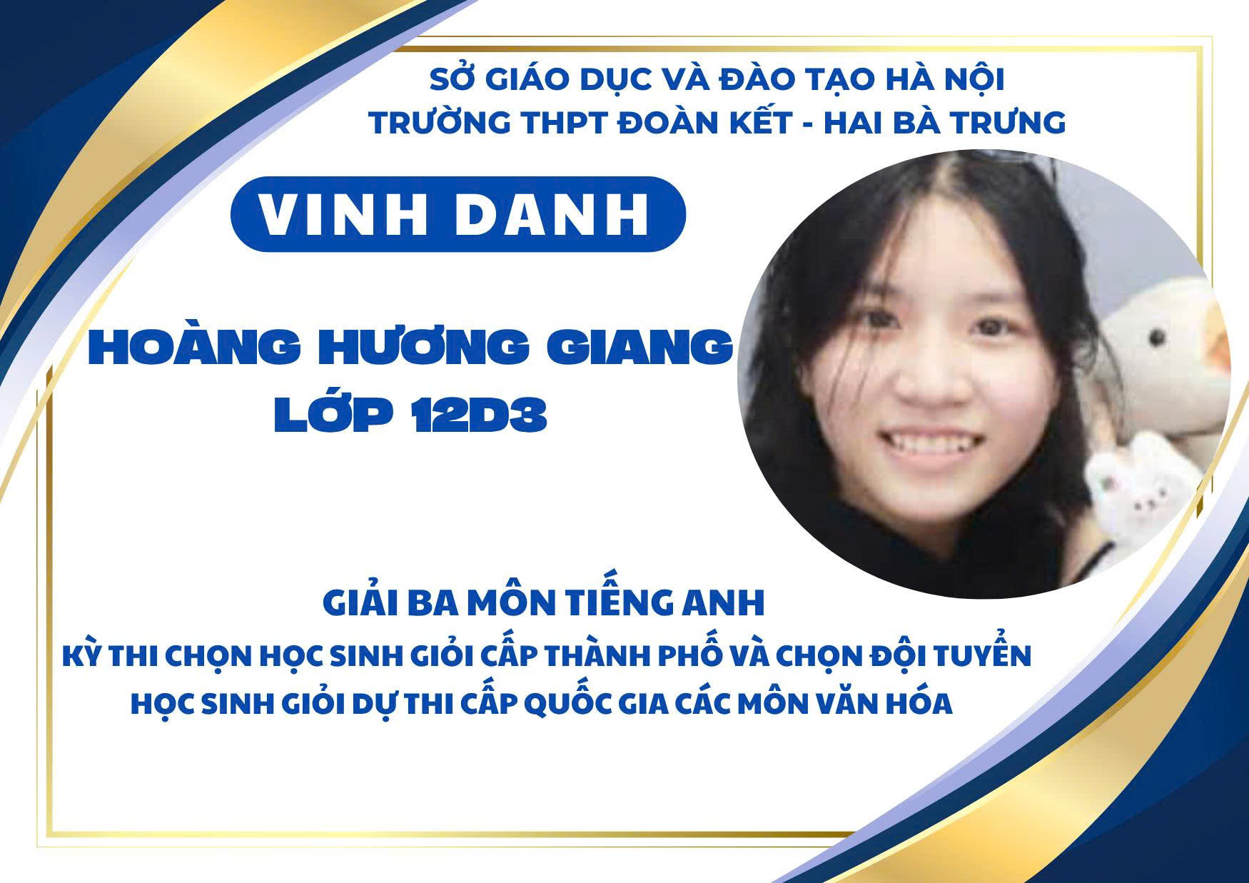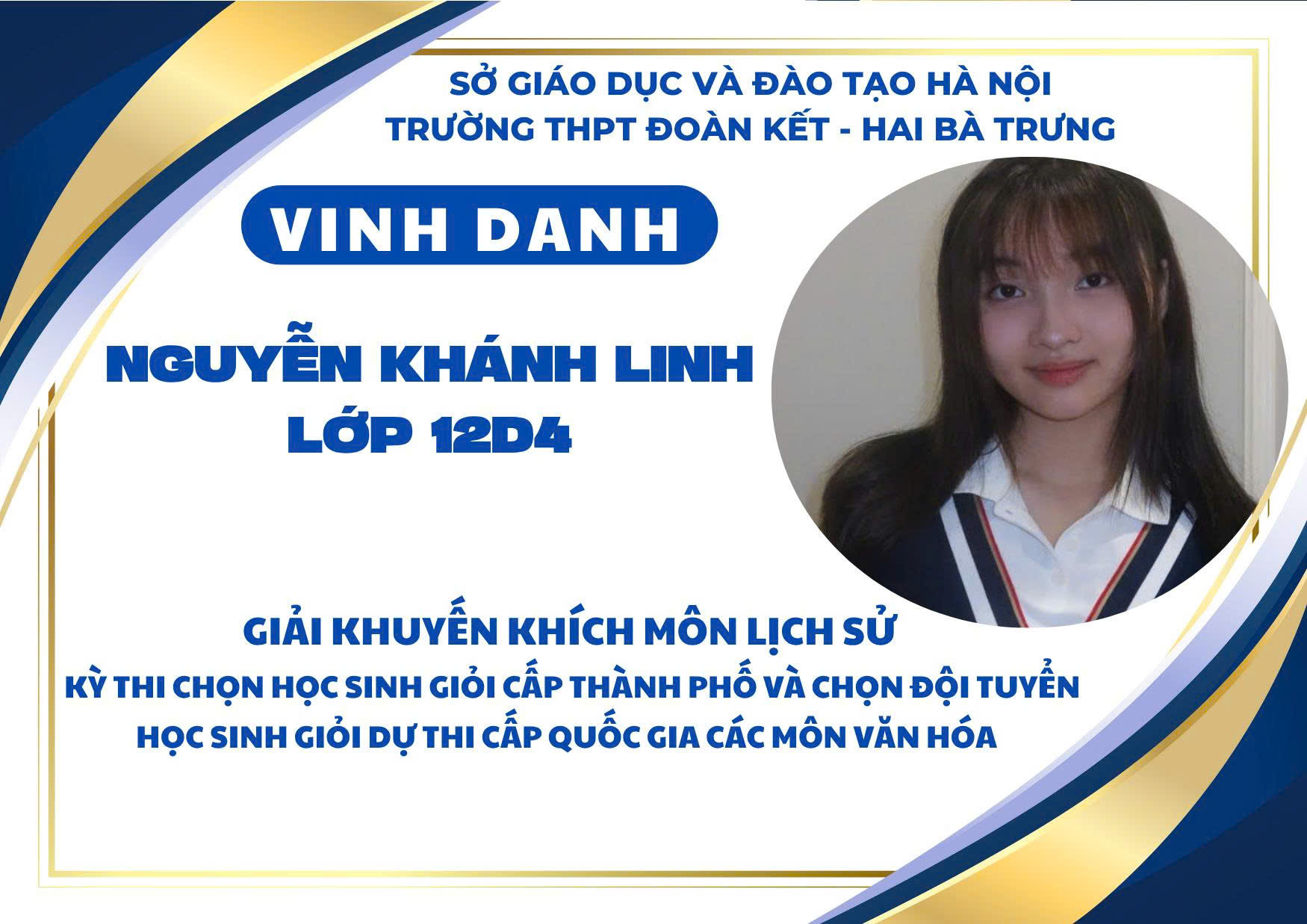 Nhà trường xin chúc mừng các em học sinh đạt giải và biểu dương các thầy cô giáo đã đồng hành tận tụy trong suốt quá trình ôn luyện. Thành tích ấy không chỉ là niềm tự hào của cá nhân, gia đình và tập thể mà còn góp phần khẳng định vị thế, uy tín của THPT Đoàn Kết – Hai Bà Trưng trong phong trào học sinh giỏi của Thủ đô.