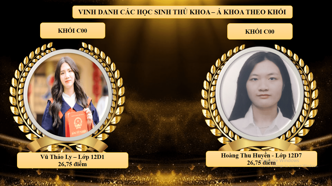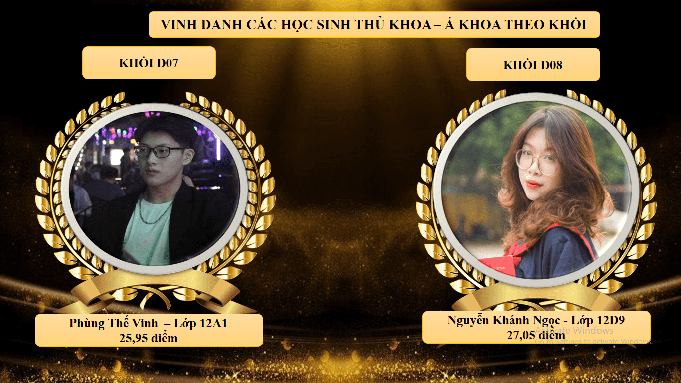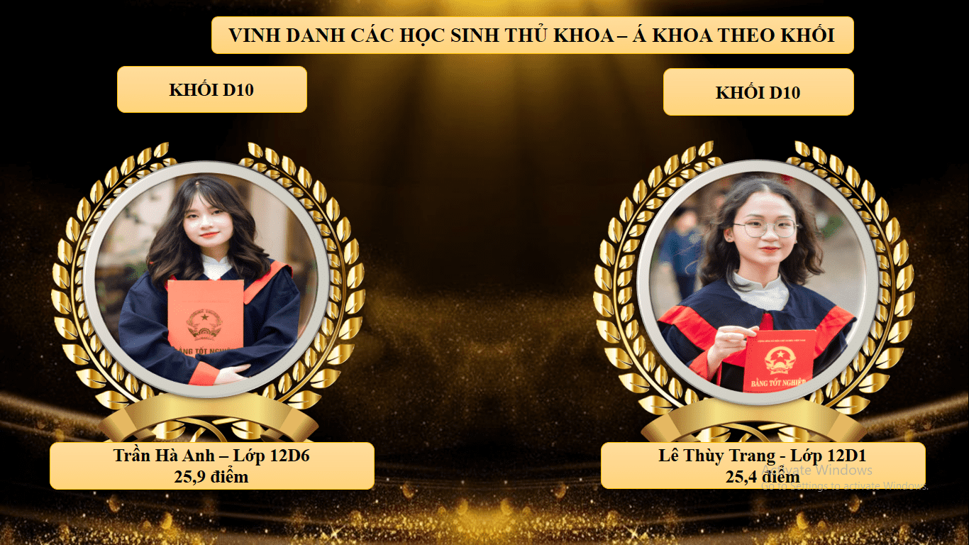 - Vinh danh các học sinh đạt thủ khoa - á khoa các khối của trường: