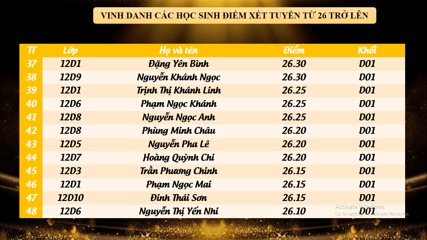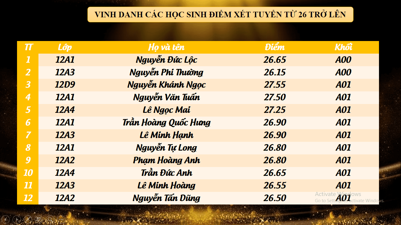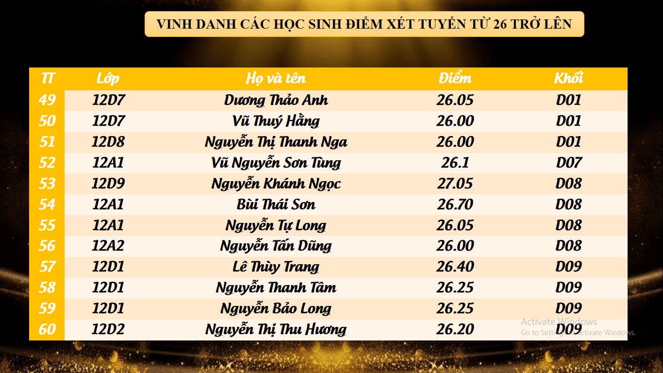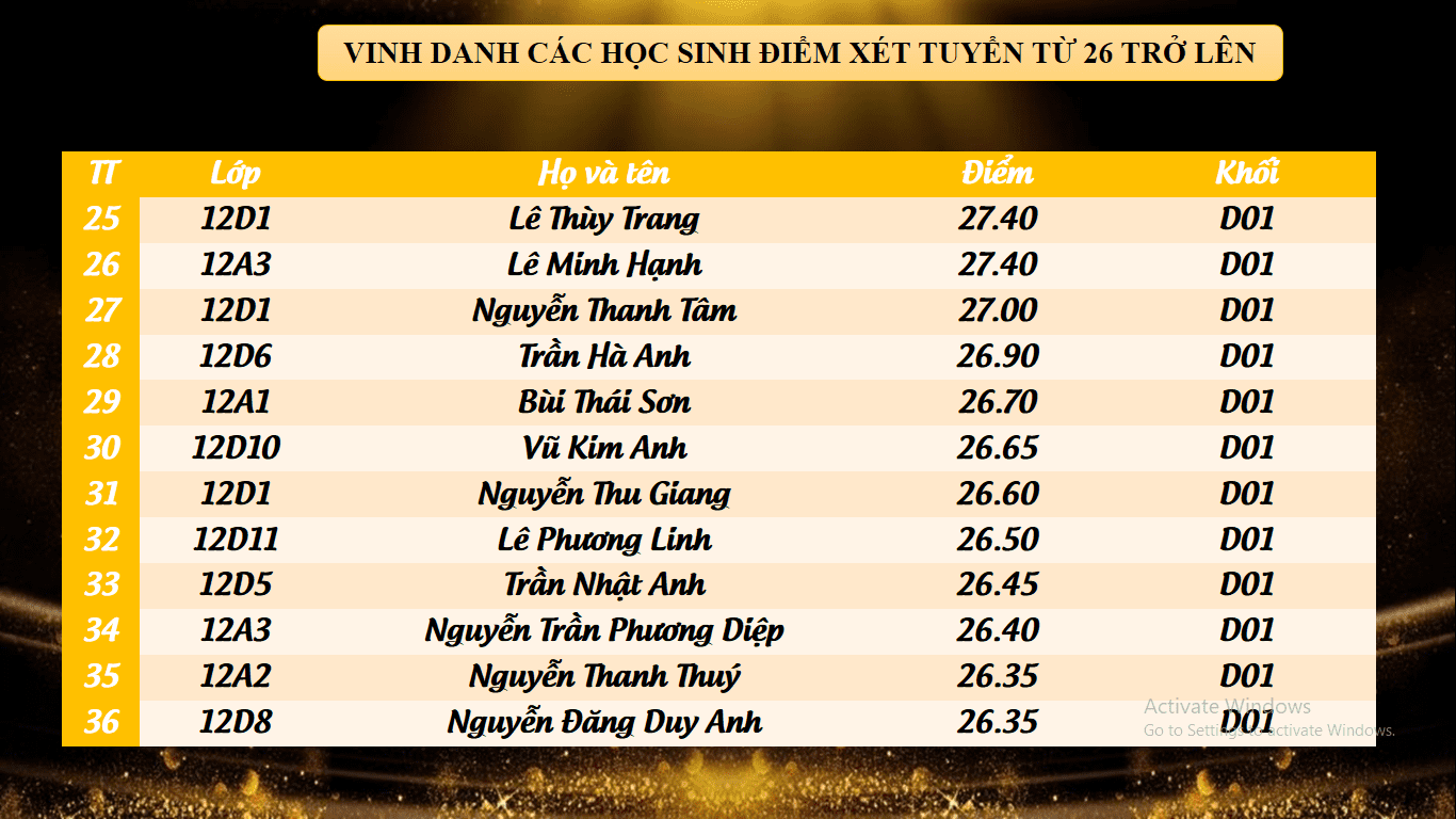 - Vinh danh các học sinh có điểm xét tuyển từ 26 trở lên: